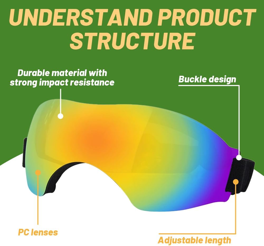 - Anti-Slip Design : Equipped with a specially designed chin strap that holds the goggles firmly in place, preventing them from slipping off easily.Whether for a sunny walk or a fun day at the beach, these goggles are the perfect accessory to keep your pet’s eyes safe and healthy