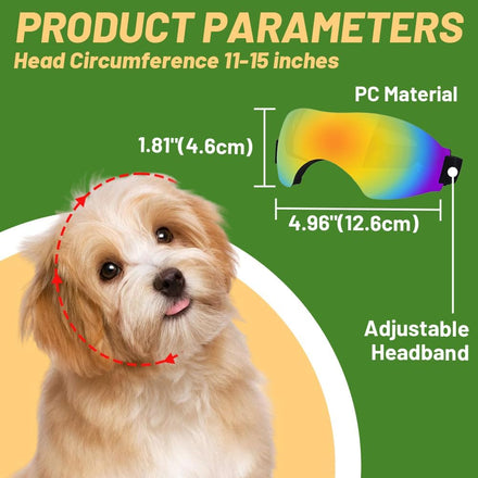 - Size : Suitable for dogs with a head circumference of 28-38cm, providing a snug and secure fit for medium-sized breeds.Frame Length: 4.96"(12.6cm), Height: 1.81"(4.6cm). (No Tensile Measurement) Adjust straps after putting on to avoid glasses slipping off and hurting dog eyes