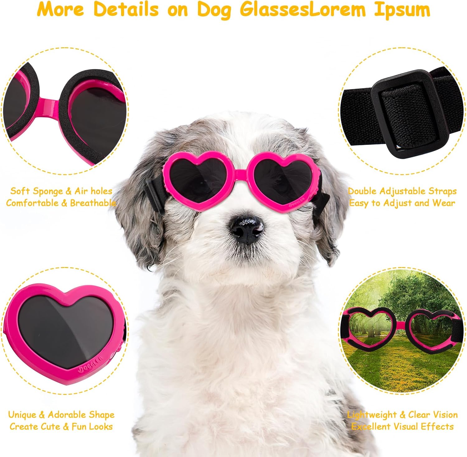 - Absolutely Cute Dog Glasses: Your dog wants to be the center of attention, and our heart-shaped dog sunglasses make that dream come true. Puppy glasses create a fashionable and cute look for your adorable dog, and it will get many compliments