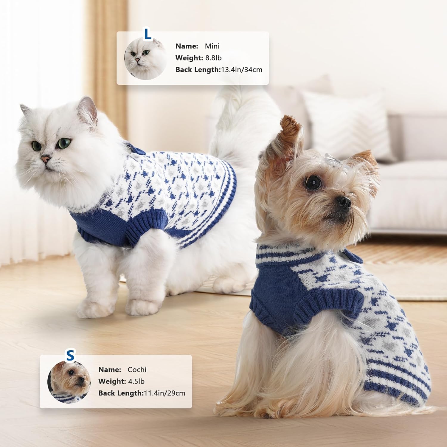Size Attention: This sweater is one size smaller than usual, please check the sizechart carefully, focusing on thebust and length. Product Size: M: Neck 9.5 in, Chest 14.9 in, Body 9.8 in, Suit for West Highland, Pomeranian, poodle, etc. small dogs.