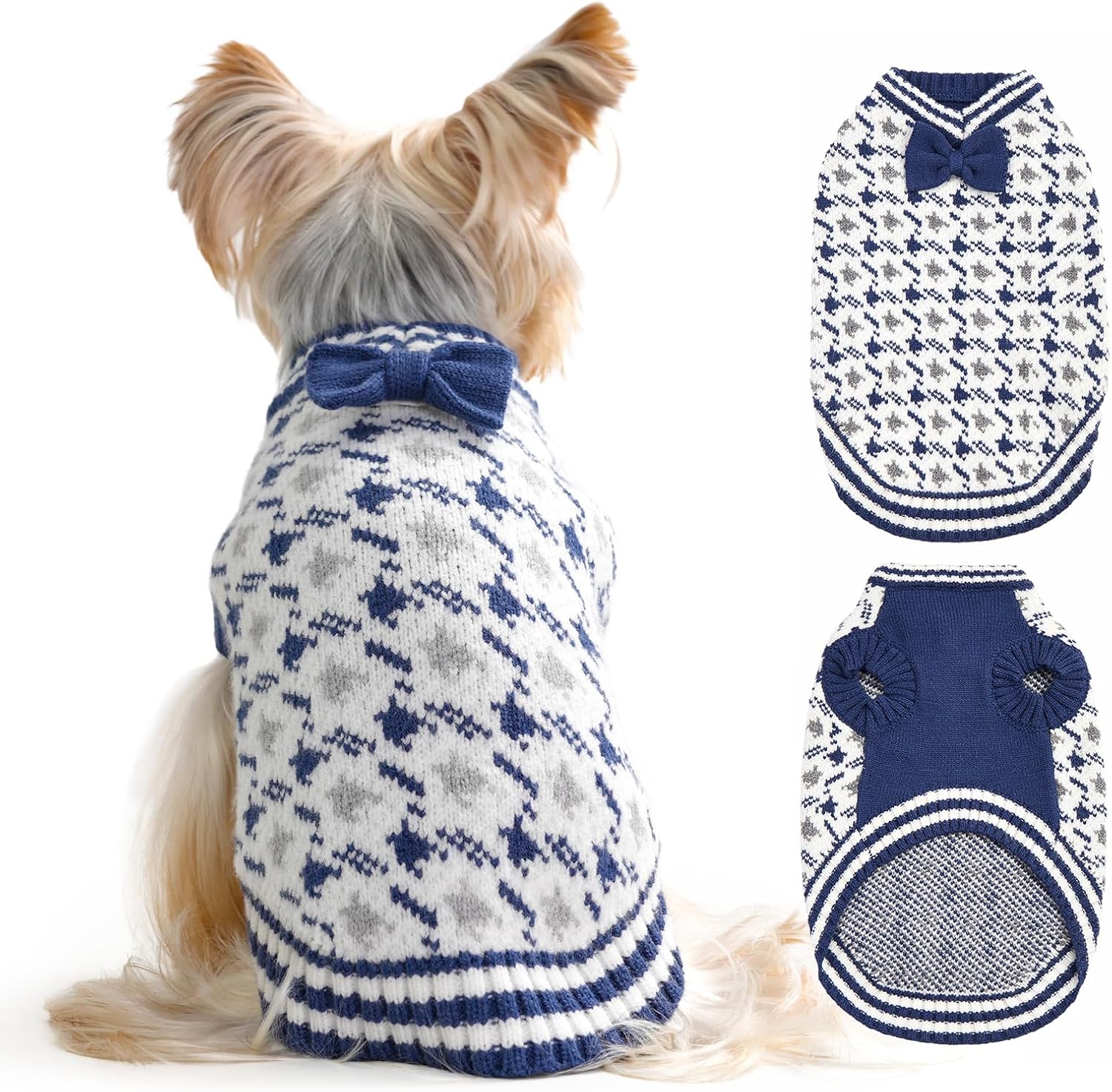 Wide Application:The design with a bow is stylish and charming, making your little dog look even more adorable, ladylike (gentlemanly) and eye-catching This dog pullover sweater is the perfect outfit for Christmas, Thanksgiving, Valentine's Day, and all holidays or parties,Also great gift for your friend with pets, it is a essential apparel for every pet wardrobe. The bow tie is located on the back of the product and can be removed and sewn to the chest if desired.