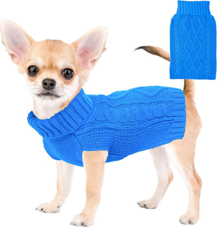 Dog Sweaters for Small Dogs XS Dog Sweater Winter Dog Clothes Boy Chihuahua Yorkie Sweater Warm Pet Clothes Knitted Solid Puppy Sweater Cat Sweater Doggy Turtleneck for Cold Weather (Blue, X-Small)