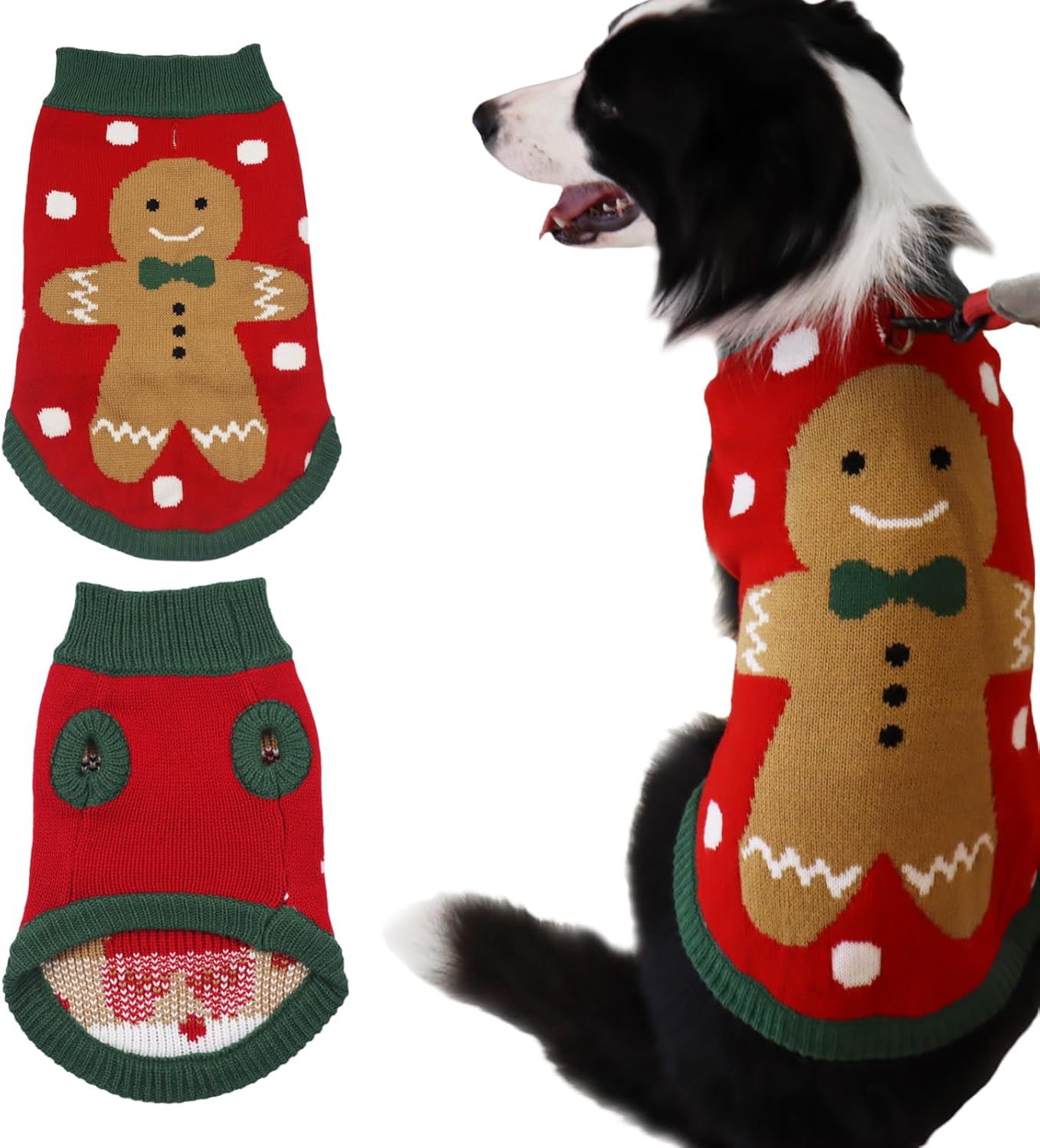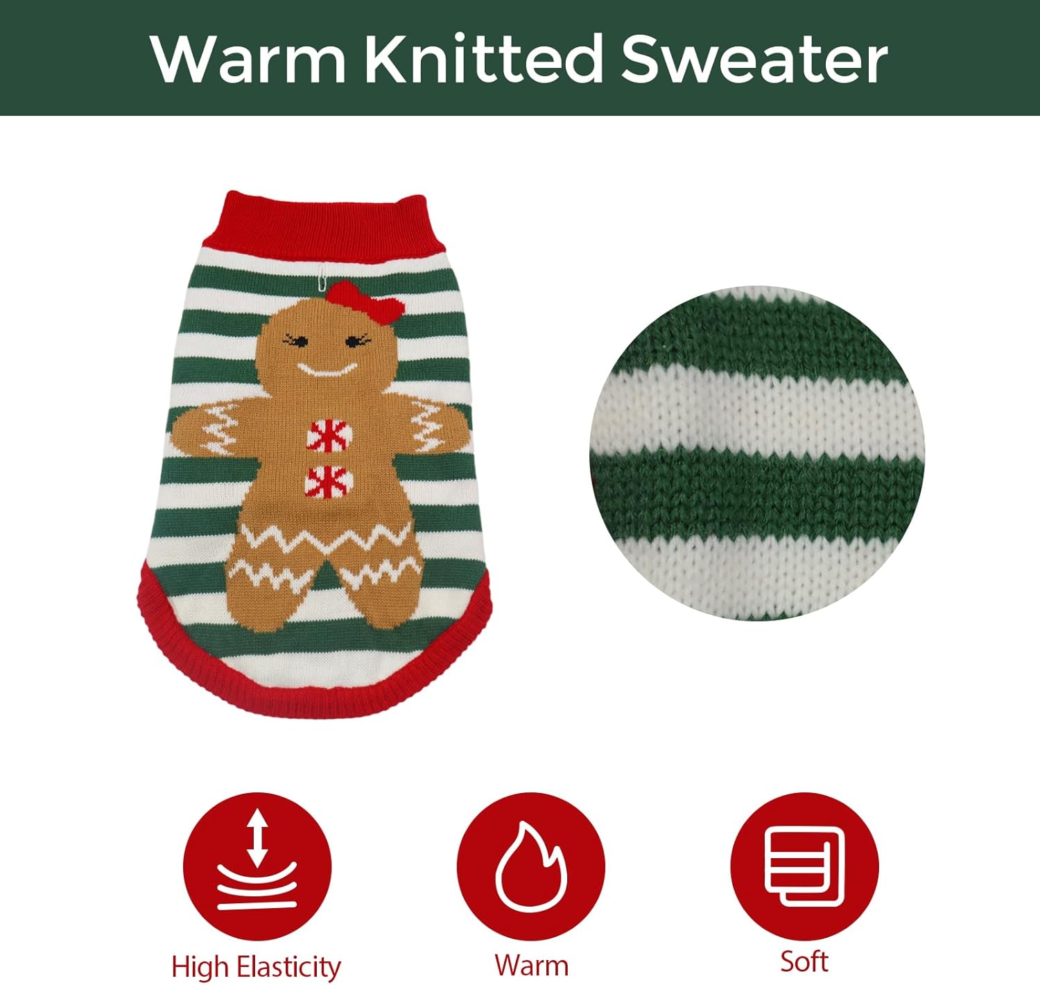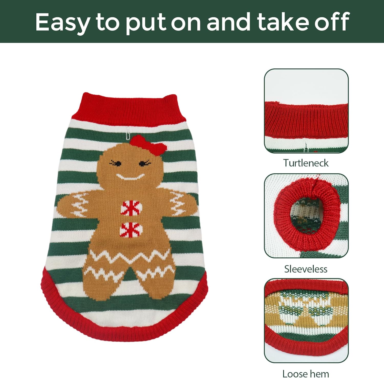 - 【Festive Gingerbread Man Pattern】Adorable Christmas-themed embroidery creates Instagram-worthy moments, making this pet sweater an ideal holiday gift for dog lovers (fits pets up to 15lbs).