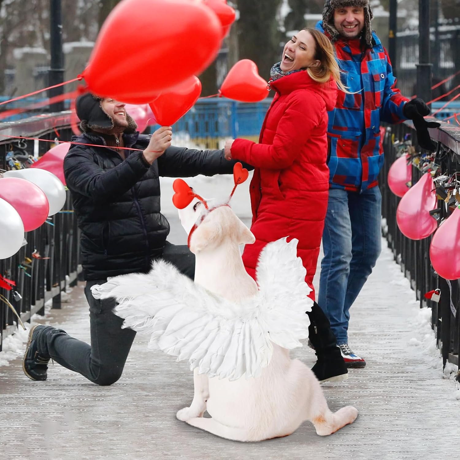 - 【Charming Heart Angle Design】Your furry companion will steal hearts in this dog enchanting love-theme costume, complete with plush angel white feather wings and a creative red heart headband set.