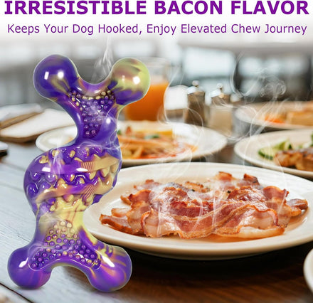 - Irresistible Bacon Scent: Anxious dogs find comfort in familiar scents—and bacon is a hit favorite! This indestructible dog toys for aggressive chewers' bacon aroma helps calm nervous pups during you’re away. It’s a cozy, reassuring toy that smells like something they love.