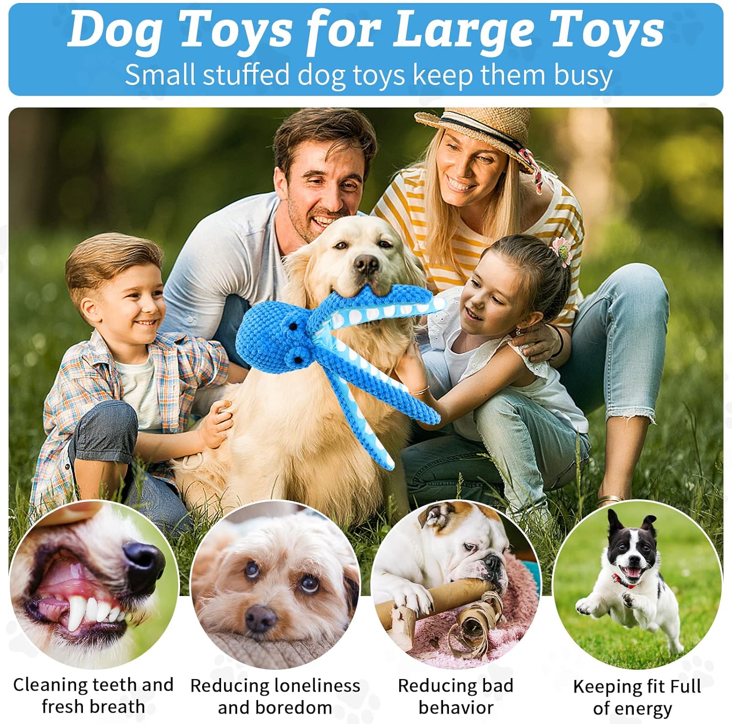 - 【Funny Squeaky Dog Toys】This plush dog toys have a squeaker in the head will attract dog’s interest and keep them entertained;The squeaker makes dogs go wild when dogs play this octopus stuffed dog toys,while the tentacles become dog tug toys for both large dogs and puppy