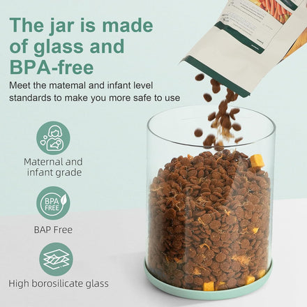 - Durable Glass with Clean, Modern Style: Made from high-quality thick glass, this jar is built to last and designed to look good on your counter, pantry, or pet shelf. Unlike plastic, it won't absorb odors or stain. It's a stylish upgrade for any kitchen or pet corner.