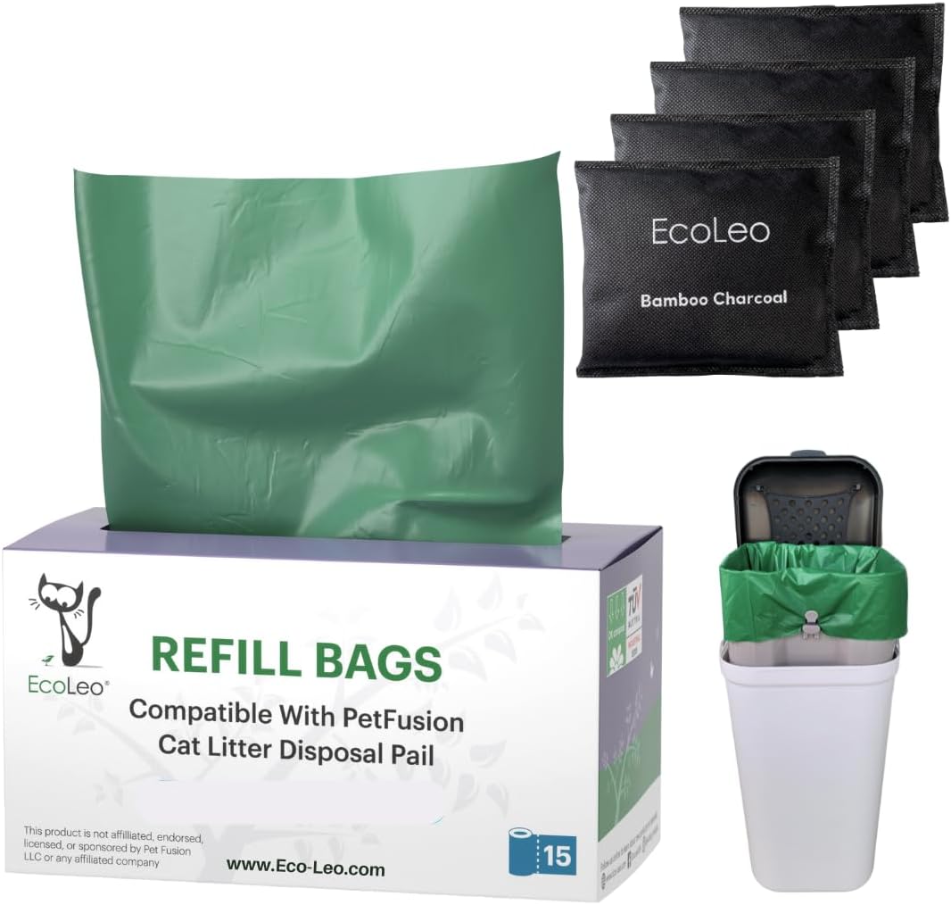- 🐱 FITS PETFUSION* PET WASTE DISPOSAL PAILS - Extra long and custom sized to fit the portable cat litter disposal and dog poop bag waste station. Heavy duty, premium, opaque green liners. Strong and tear proof but plastic-free. *Note: This product is not affiliated, endorsed or sponsored by Pet Fusion, LLC. **Pail not included in purchase**