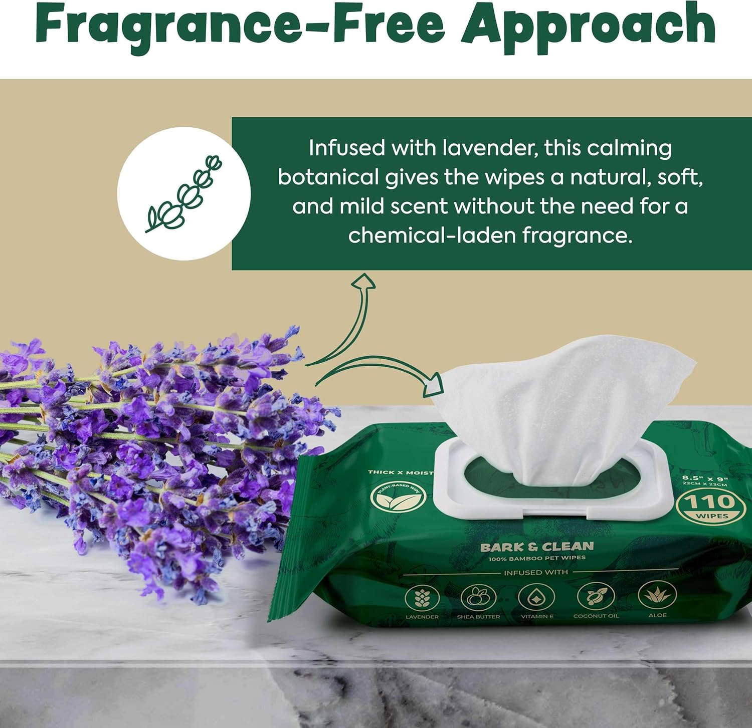 - These lavender dog wipes are infused with soothing and moisturizing ingredients like lavender, shea butter, vitamin E, coconut oil, and aloe making them perfect for dogs with sensitive skin.