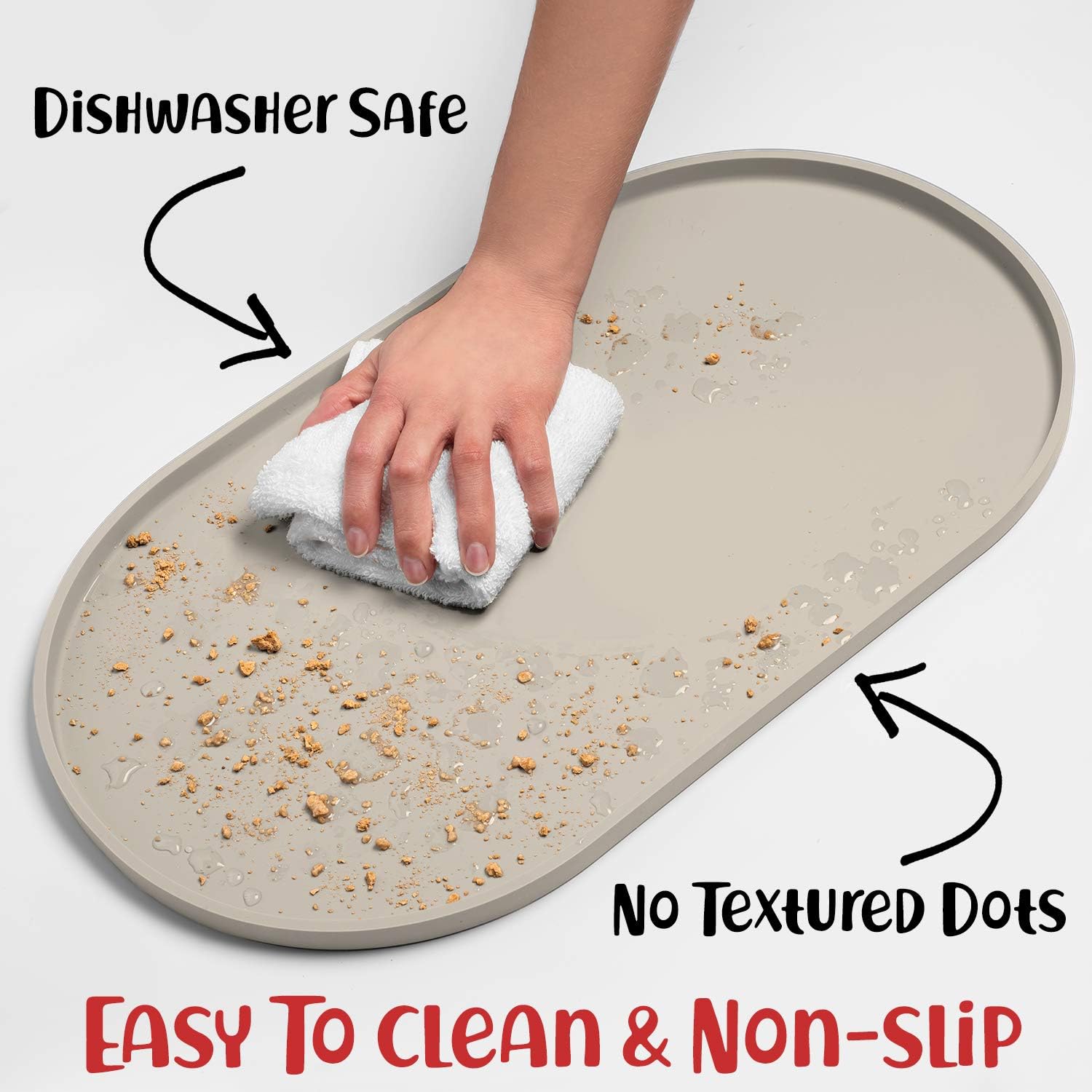 - CONVENIENT: Unlike other dog food mats that have textured surface, our dog mat has smooth surface, which is much easier to clean and it is better at preventing dog bowls from sliding due to stronger contact with the pet bowl. Our dog bowl mat is easy to wipe with a wet cloth or wash by hand and it is dishwasher safe. If you are traveling or just visiting friends, you can just roll it and take it with you.
