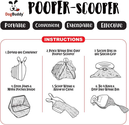 - Stress-Free Cleanup - Enjoy a cleaner, more hygienic way to clean up after your dog. DogBuddy Pooper Scooper removes waste from any surface, keeps your hands clean and your walks enjoyable. Its easy-to-use design makes it a perfect tool that even kids can use.