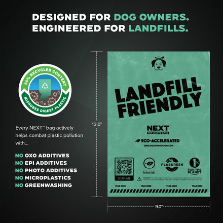 - Landfill Friendly: The only bags designed to be landfill friendly, our pet poop bags are engineered to accelerate the end of the life cycle for plastics in environments such as landfills, oceans, and soil