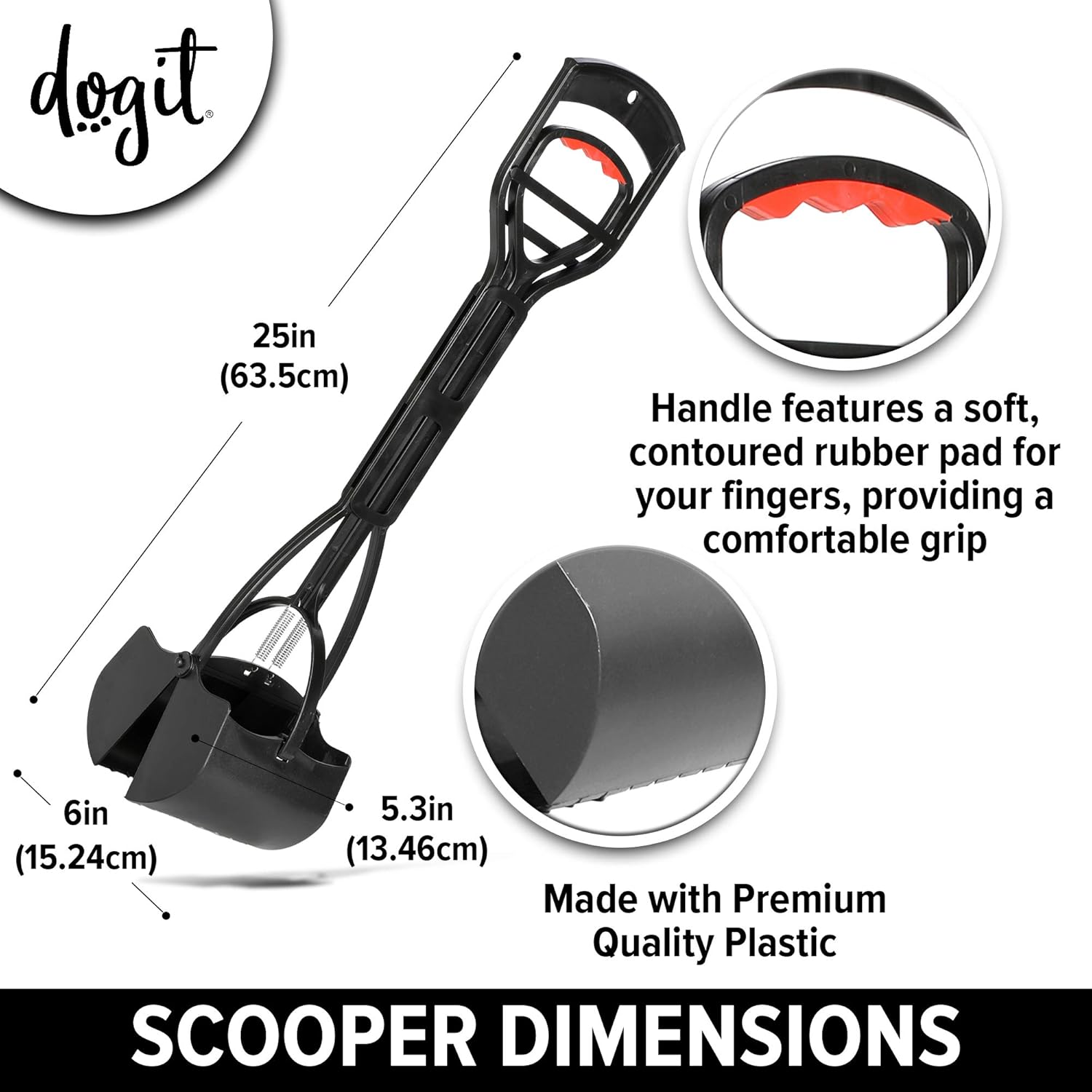 The Dogit Clean Jawz Waste Pet Pooper Scooper for Concrete and Smooth Surfaces ergonomic handle features a soft, contoured rubber pad for your fingers, providing a comfortable grip. The dog scoop has two calibrated springs for safe, durable, and reliable operation. The unit is 25.5 inches in length, which provides excellent reach and helps eliminate bending. The dog pooper scooper is made of strong yet lightweight plastic that can be rinsed easily after use. This scooper is specially designed for picking up waste on concrete and smooth surfaces in one easy motion. This product is the perfect maintenance tool for puppies, small dogs, medium dogs, large dogs, and extra-large dog breeds. Dogit has a complete line of pet supplies including dog bowls, dog beds, dog toys, dog collars, dog leashes, dog food, dog treats, dog poop bags, dog crates, dog gates, dog poop rakes, dog harnesses and more!