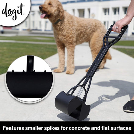 - Features smaller spikes ideal for scooping dog waste from concrete and flat surfaces, and the ergonomically designed handle provides comfortable one-handed operation