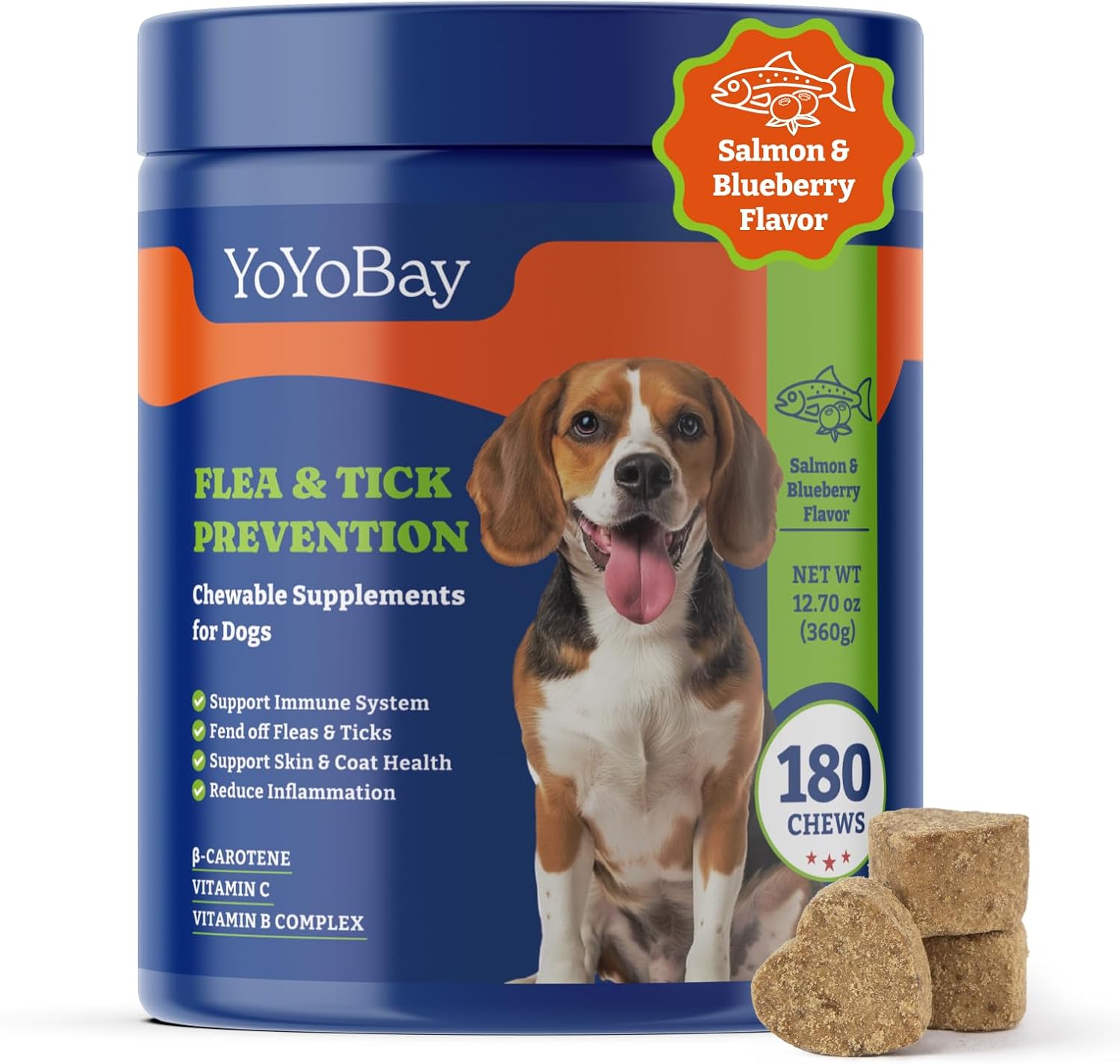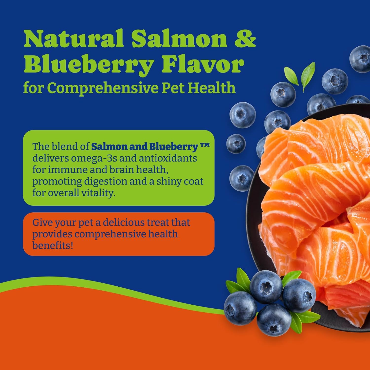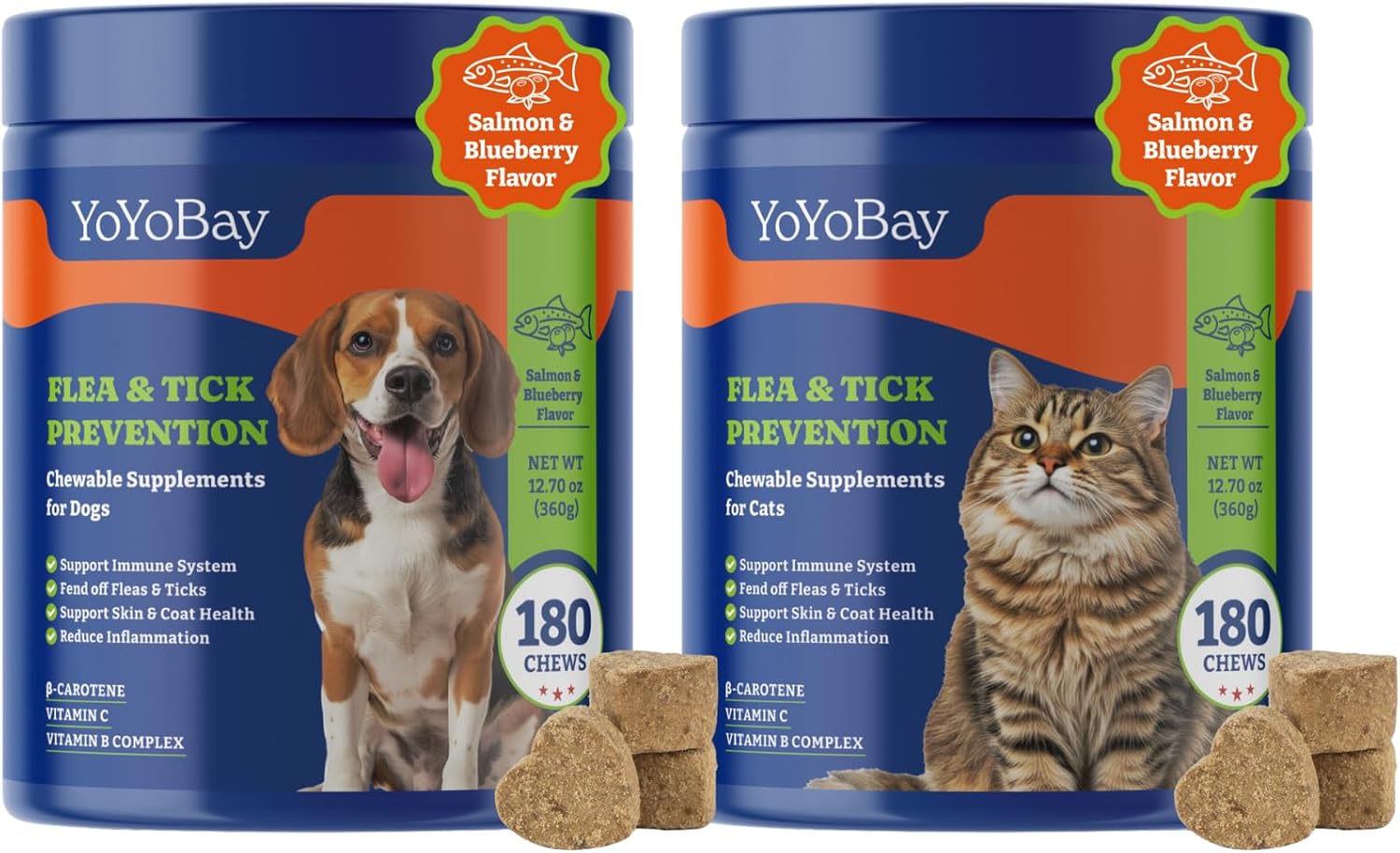 - Tastes Dogs & Cats Adore: Our flea & tick prevention chews combine the flavorful tastes of salmon and blueberry, designed to delight your pet while supporting digestion, coat health, and overall well-being. Treat your pet to a delicious and beneficial supplement they’ll enjoy every day.