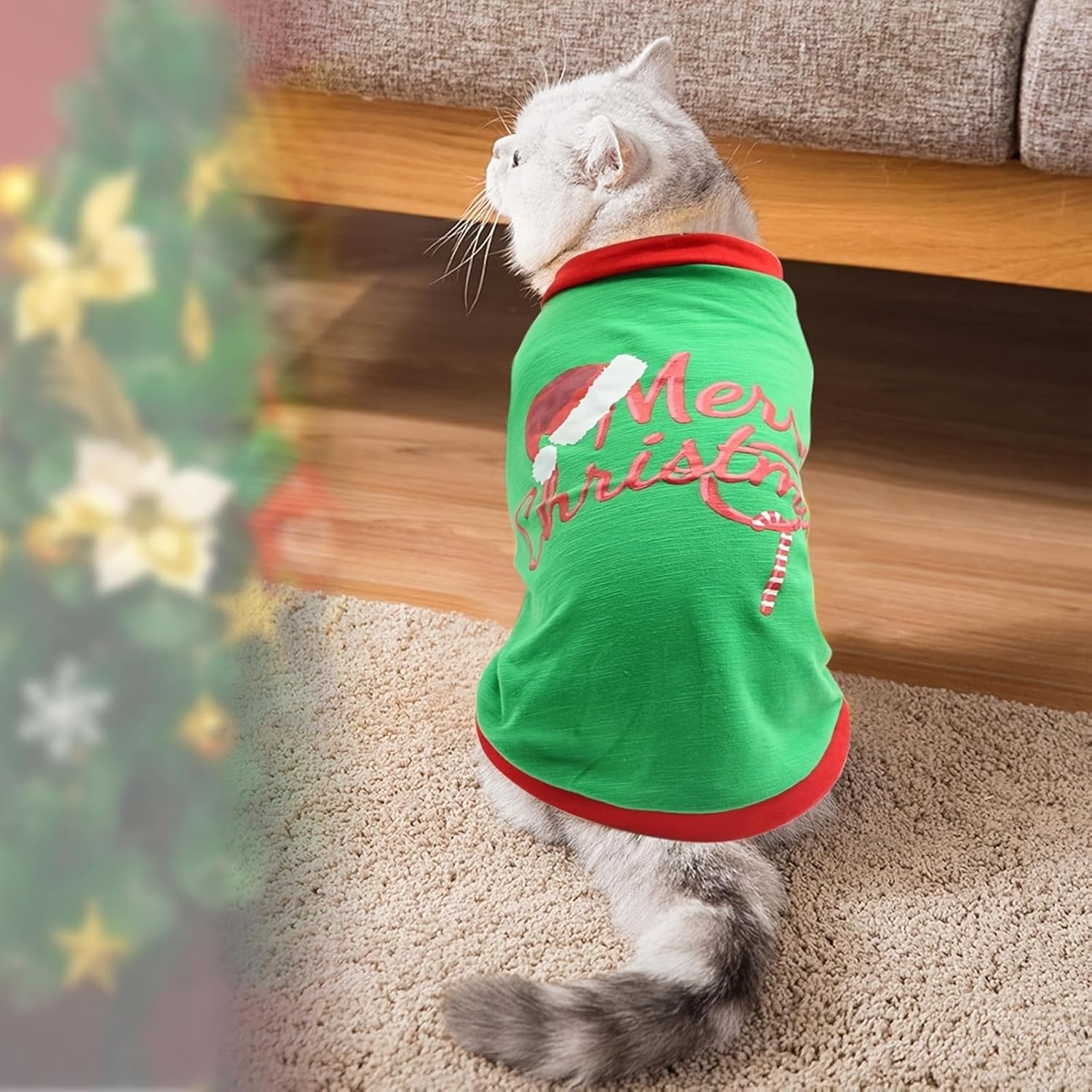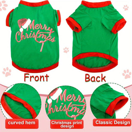 Dogs Christmas Shirts Snowflakes Clothes Pet Santa Claus Suit Puppy Outfits Funny T-Shirt for Small Dogs and Cats Christmas Holiday Festival Party-Green-S