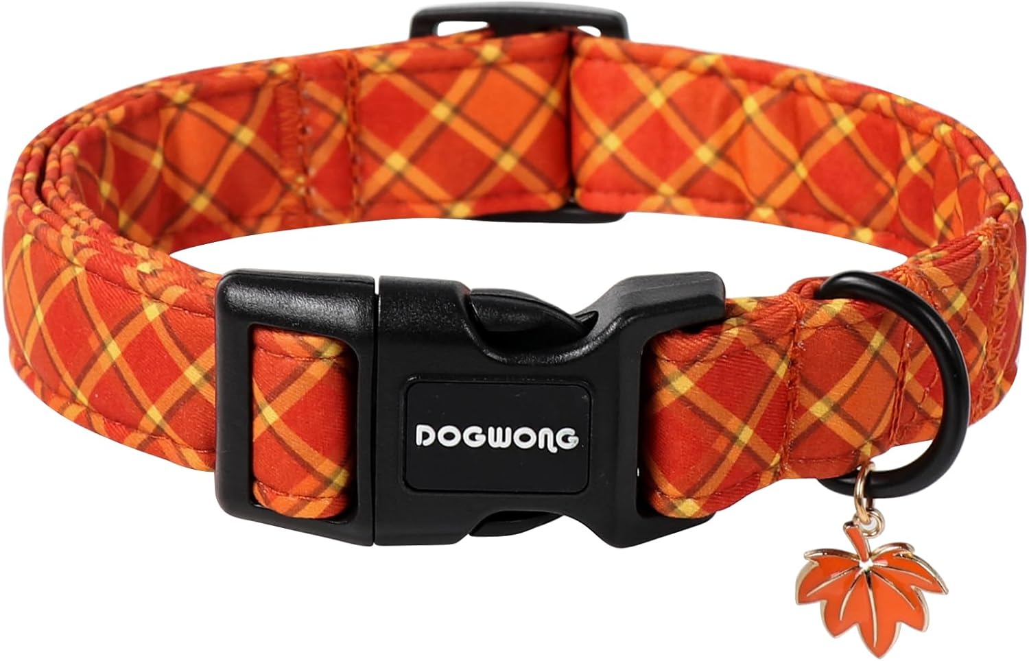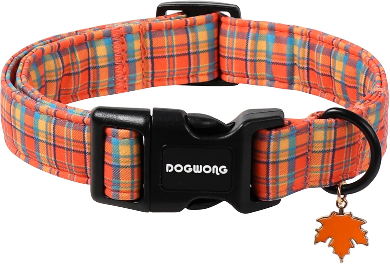 - ELEGANT ACCESSORY FOR YOUR PET: DOGWONG dog collar adds an elegant touch to your pet's wardrobe and is perfect for many occasion. This fall orange checkered dog collar is perfect as a halloween dog collar or thanksgiving dog collar. Suitable for small, medium and large dogs, this cotton collar is both stylish and practical.
