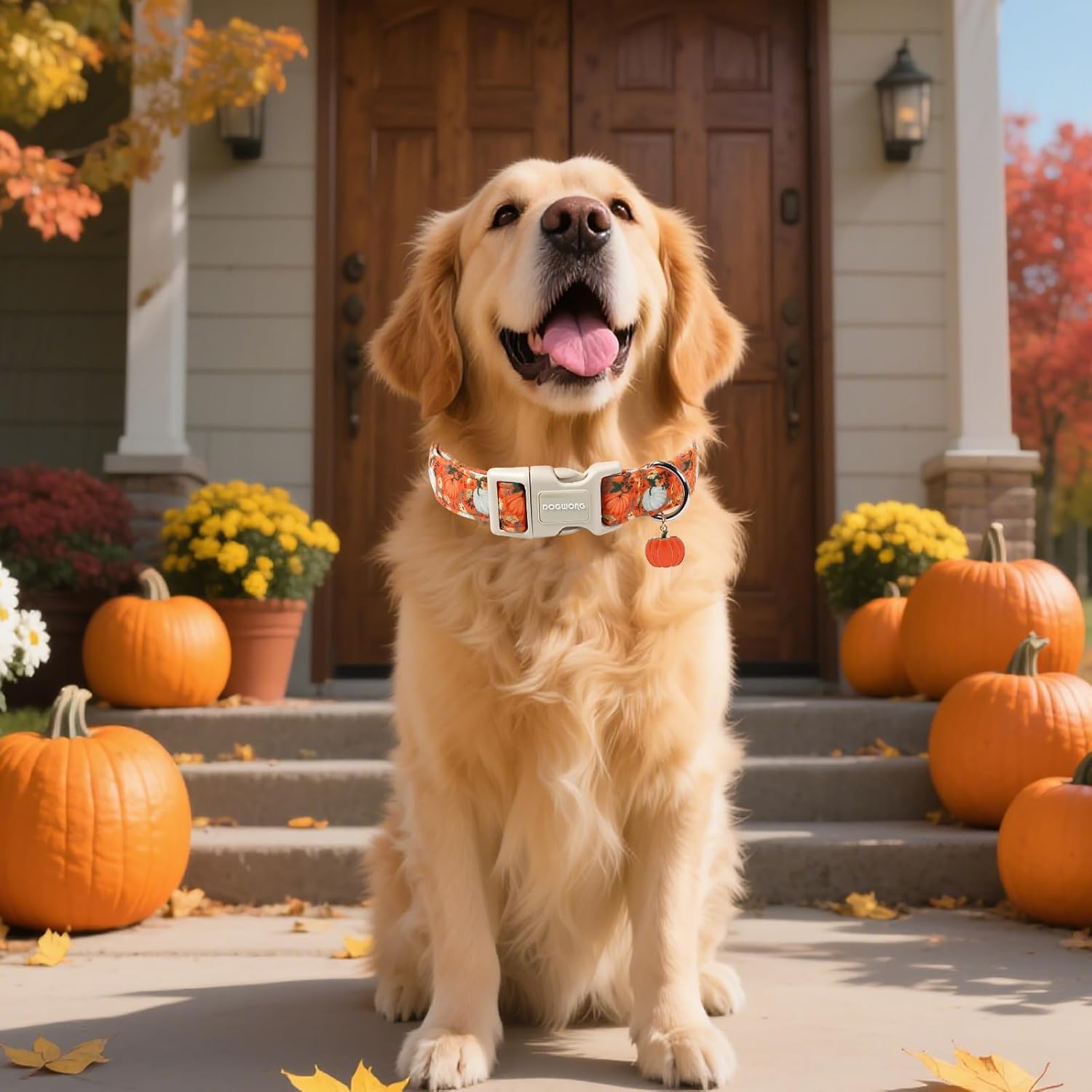 - High-Quality Fabric: Our daisy pumpkin dog collar is crafted from lightweight and comfortable cotton, ensuring your furry friend won't experience any irritation. The cotton material is also easy to clean by hand. Avoid scratching the buckle by avoiding washing the collar in the machine.
