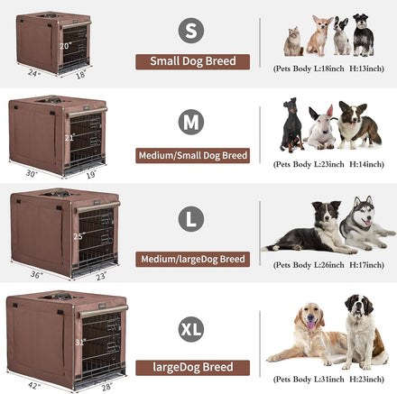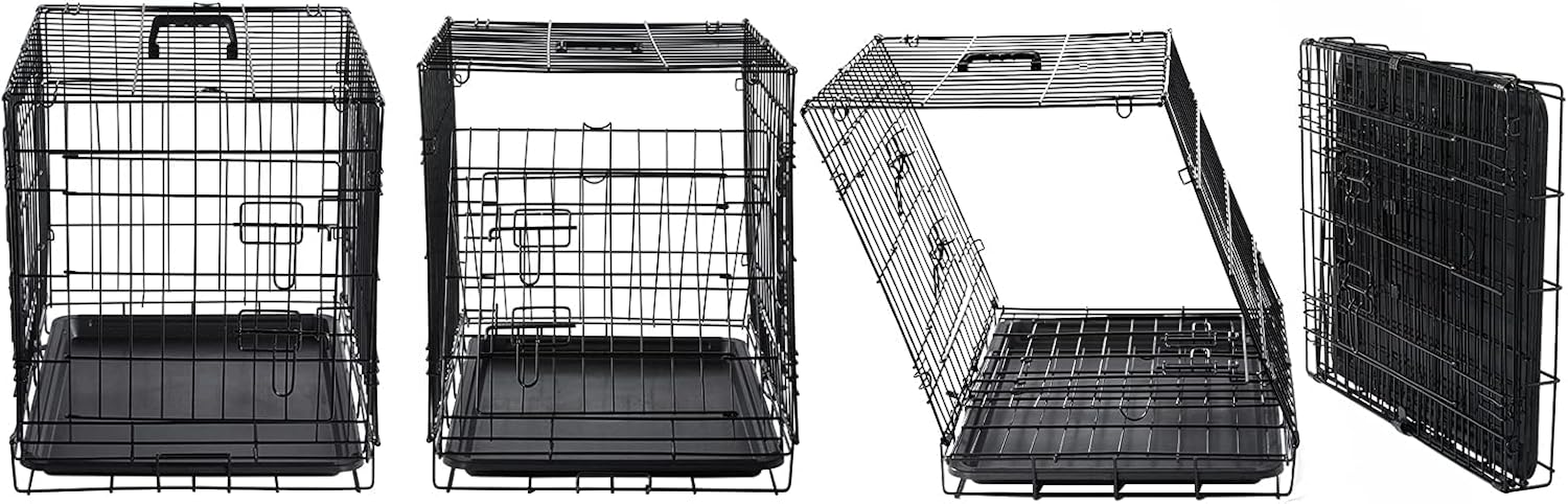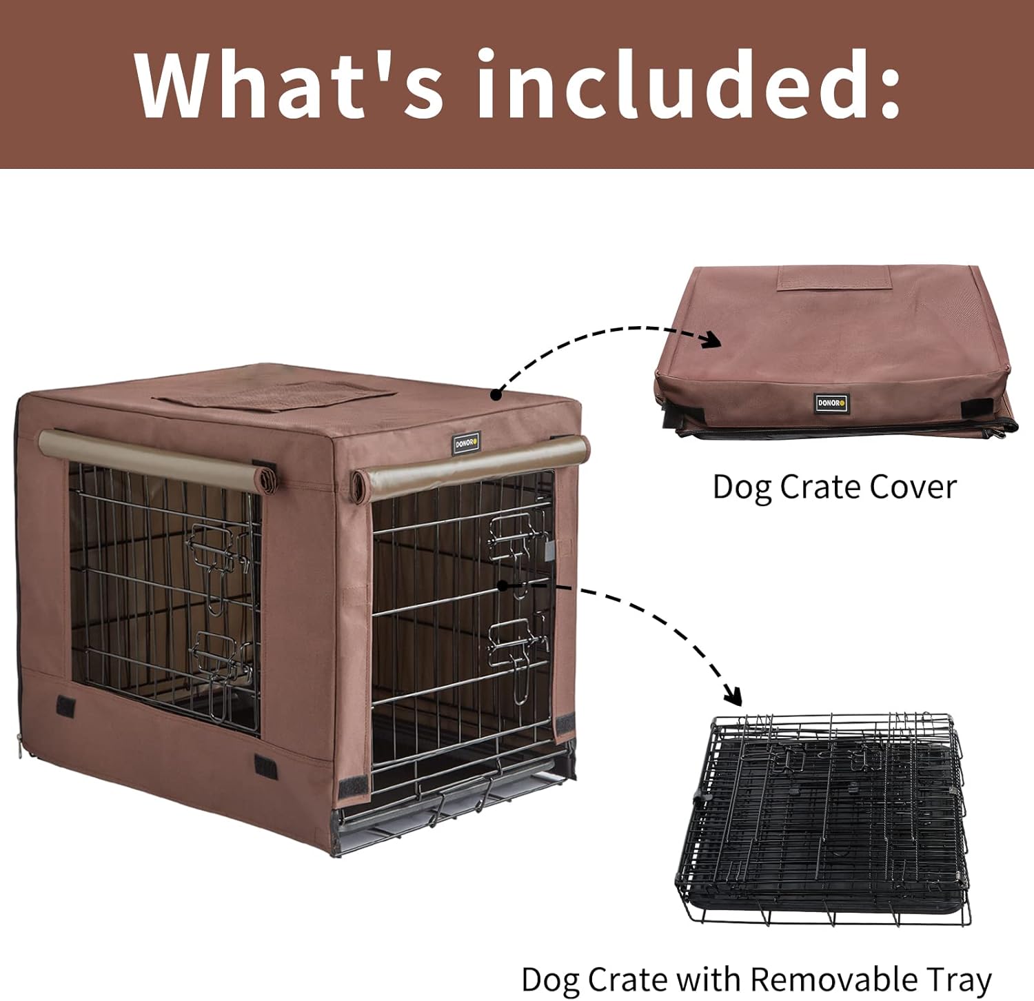 - FULLY EQUIPPED SMALL DOG CRATE KIT: Include 1 x double door 24 inches dog crate for small dog, measures 24L x 18W x 20H inches; 1 x brown dog cage cover, 1 x carrying handle & 1 x leak-proof removable dog tray. Ideal for small dog breeds with adult weight up to 20 pounds