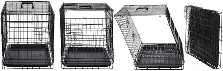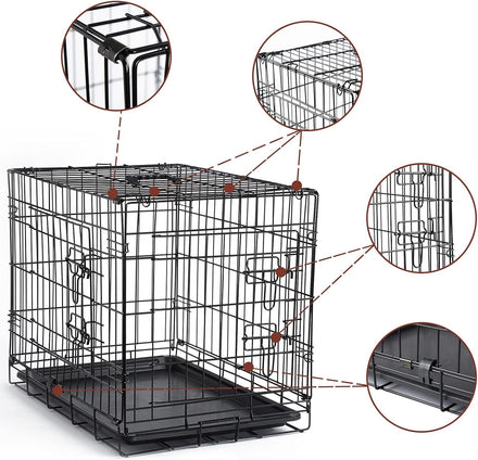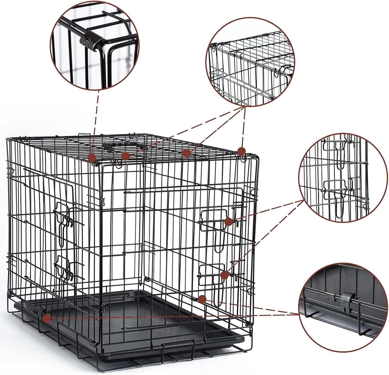 - SAFE & SECURE CONSTRUCTION: Two door dog kennel is constructed from durable metal-wire. Each door have 2 heavy duty slide-bolt latches securely lock dog crate door in place, keeping your dog safely inside their space.