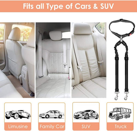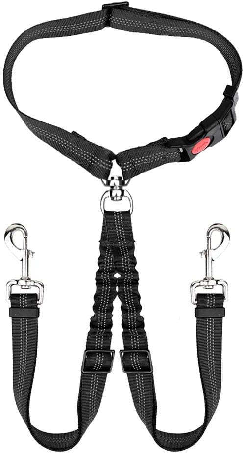 - Practical and Multifunctional - The strap could not only be used as a seat belt, hanged on the headrest easily and the rotation metal buckle connects the dog harness or dog collar and also could use with the pet seat cover. It’s not only a pet seatbelt but also a general double leash. Whether it's walking or driving, it gives the dog the safest protection and easy to control 2 dogs.