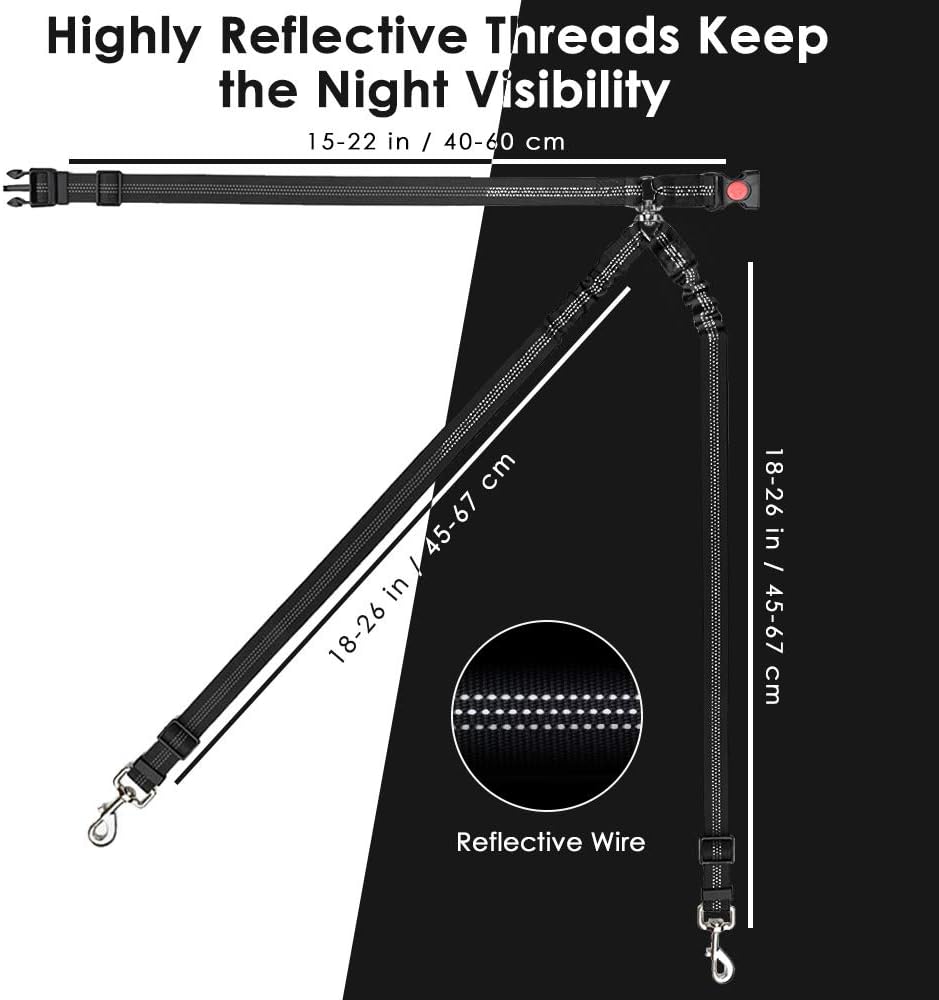 - Safety Protection at Night - The reflective stitching on the strap design enhances the visibility in the dark, helping to easily recognize the dog's position in a poorly lit environment or on the car. The dual pet lead also reminds the surrounding vehicles to avoid accidents for your dogs, assuring your dogs’ safe.