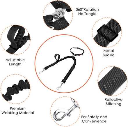 3. 360° Swivel metal Rotation could prevents tangling. Whether you are walking or driving, it helps you control 2 dogs easily and provide safety protection.