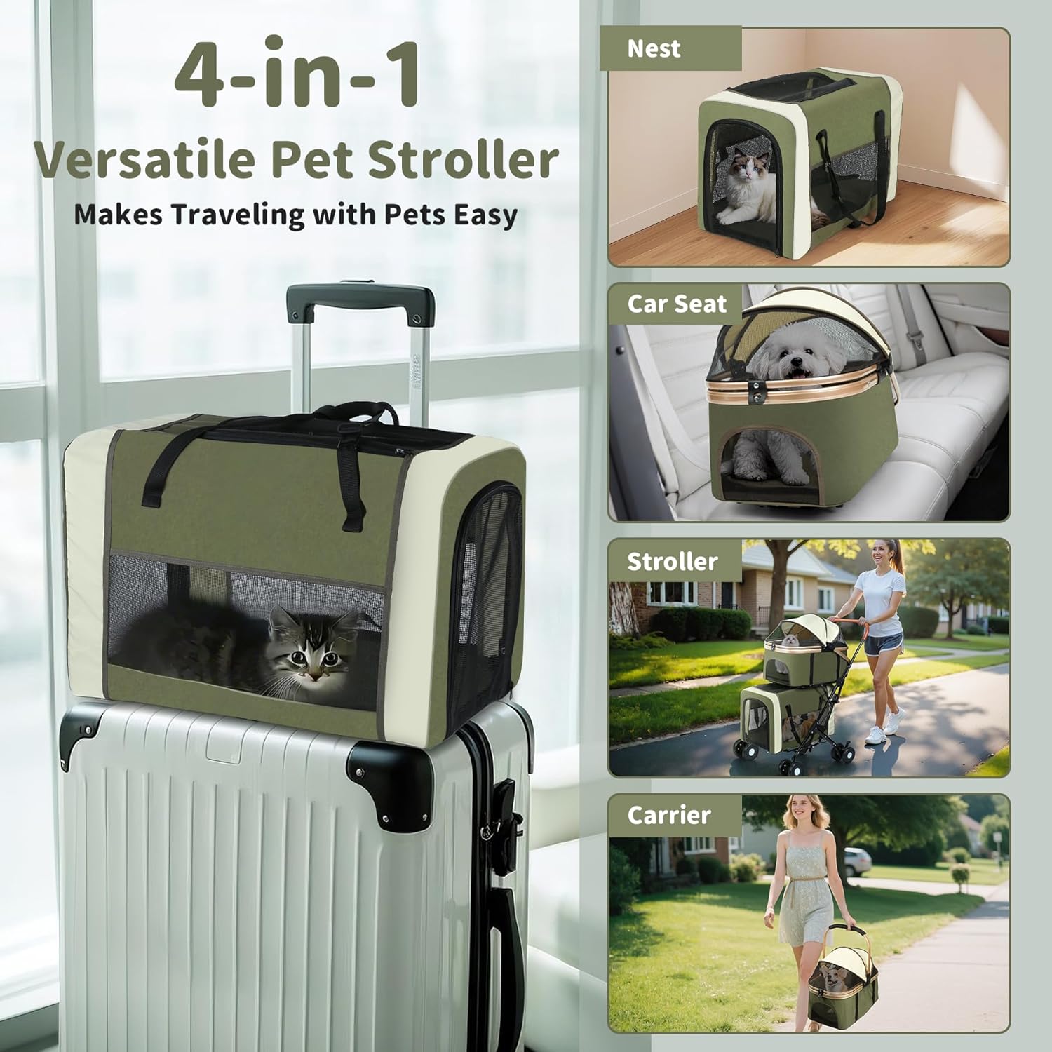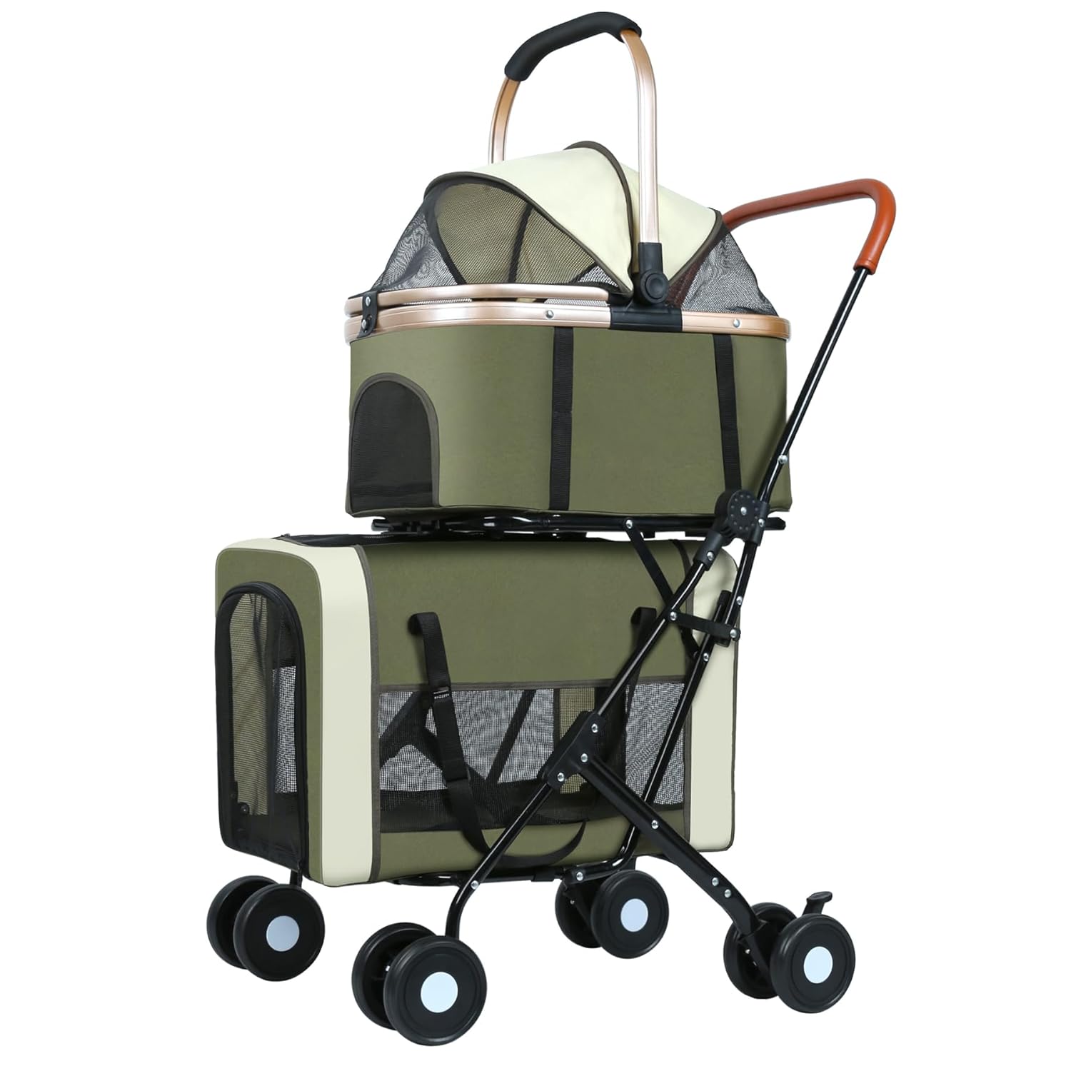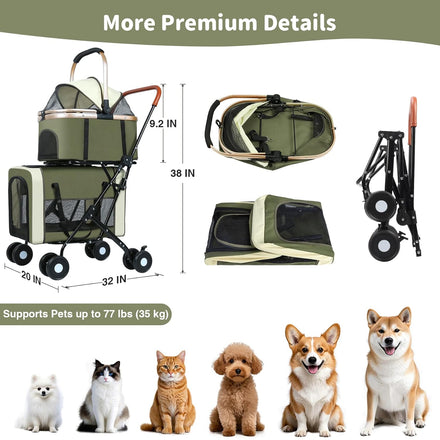 - 3-in-1 Versatility:This double pet stroller is a game-changer, transforming effortlessly into a stroller, pet carrier, or car seat, making it perfect for pet owners on the go. Whether you're strolling in the park, traveling by car, or navigating through crowded streets, it ensures your pets' safety, comfort, and convenience all in one.