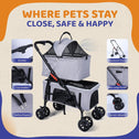 - BRING IT ANYWHERE - The double cat stroller is portable and easily foldable to carry anywhere. Easy to open and close with one hand, with sun shades to prevent sunlight or uncover them for better view. The jogging stroller is equipped with a cup holder and storage pockets where you can keep your mobile and other small items while travelling with your pets.
