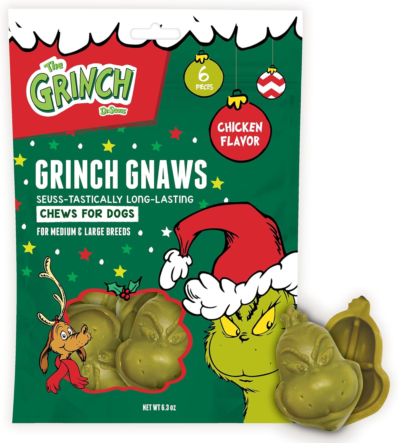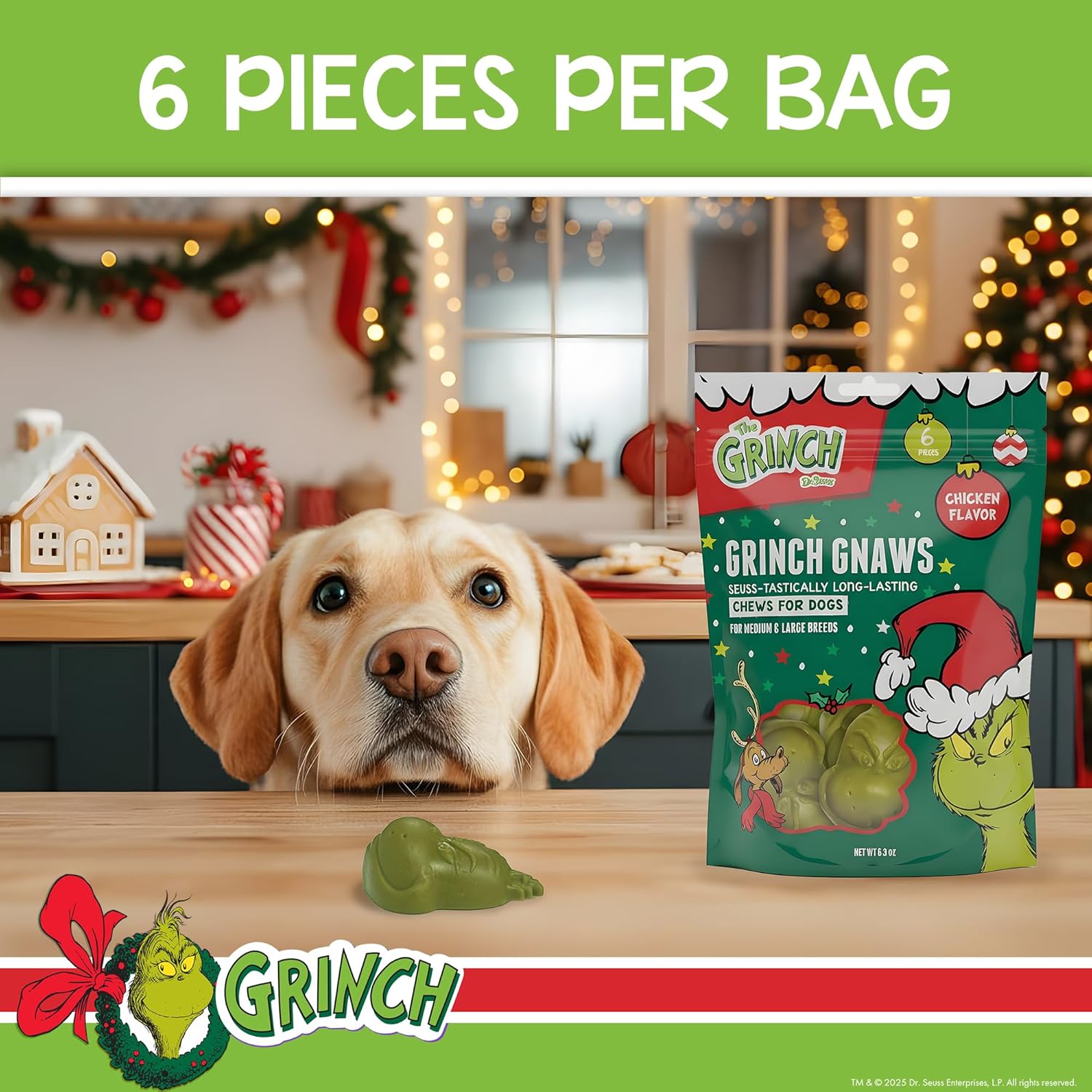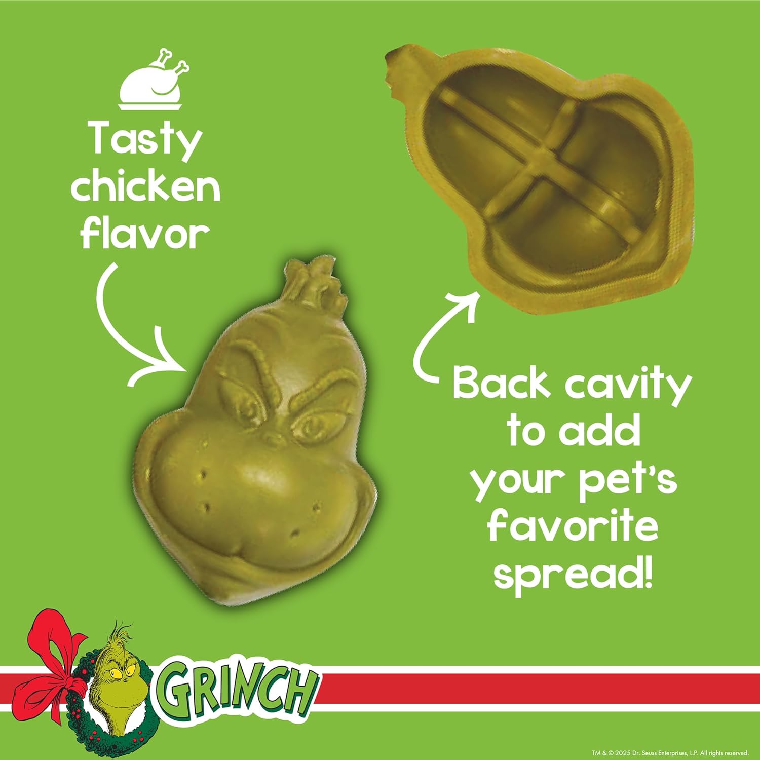 Dr. Seuss The Grinch Gnaws Chicken Dog Treats – Long Lasting Holiday Chews for Medium & Large Dogs, with Fillable Cavity for Spreads Stocking Stuffer, 6 Pieces