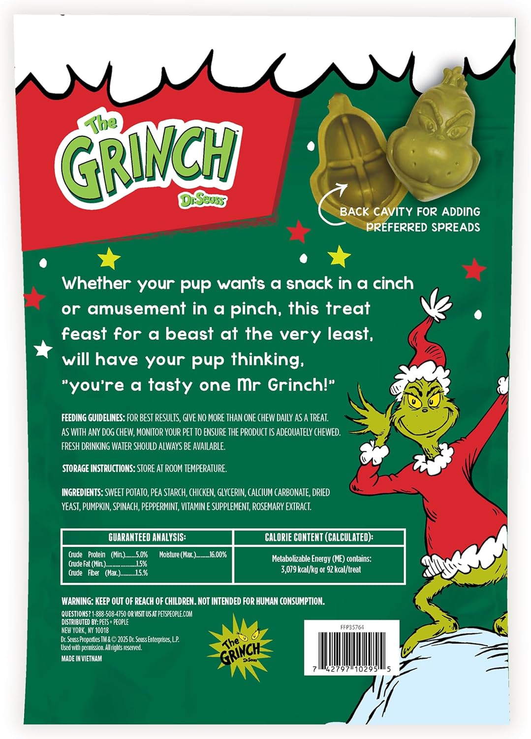 • SEUSS-TASTICALLY LONG-LASTING CHEWS – These Grinch-themed chicken treats keep pups happily chewing with a shape and size that lasts