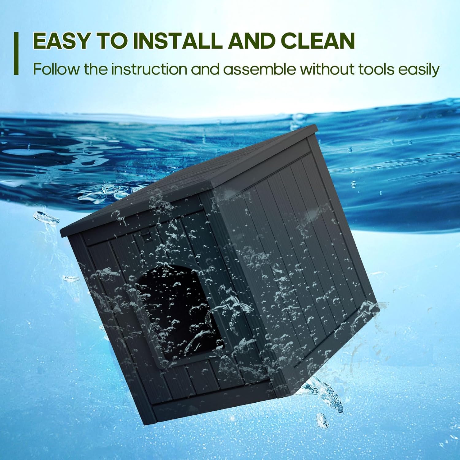 - Premium PP Material: Made from premium polypropylene (resin) material, this dog houses for outdoor dogs stands out for its superior durability. It is able to withstand the scratching and frolicking of active dogs. In addition, the resin material is safe and environmentally friendly, providing a healthy and safe environment for your precious pet.