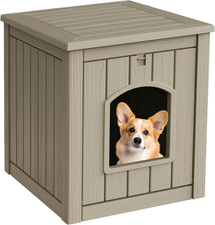 - Suitable Size: The size of the outdoor dog house is 18.46"L*21.42"W*23.62"H, with a spacious interior that can easily accommodate dogs of all sizes. Whether you have a small kitten or a large adult dog, there is enough space for them to play.