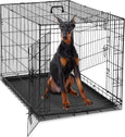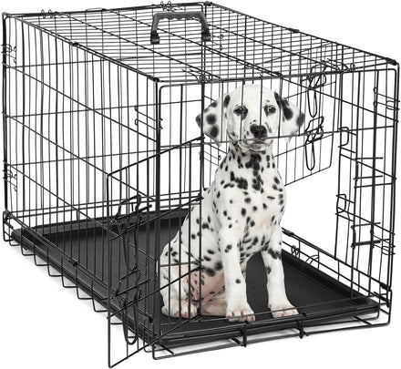 - 【DOUBLE-DOOR DESIGN】 Two-door access provides front and side door access for proper ventilation and interaction with you. Large door opening and low threshold, allows your pet easily enter and exit the crate. Each door comes with a heavy-duty sliding bolt latch to securely lock it in place to keep your pet safe.