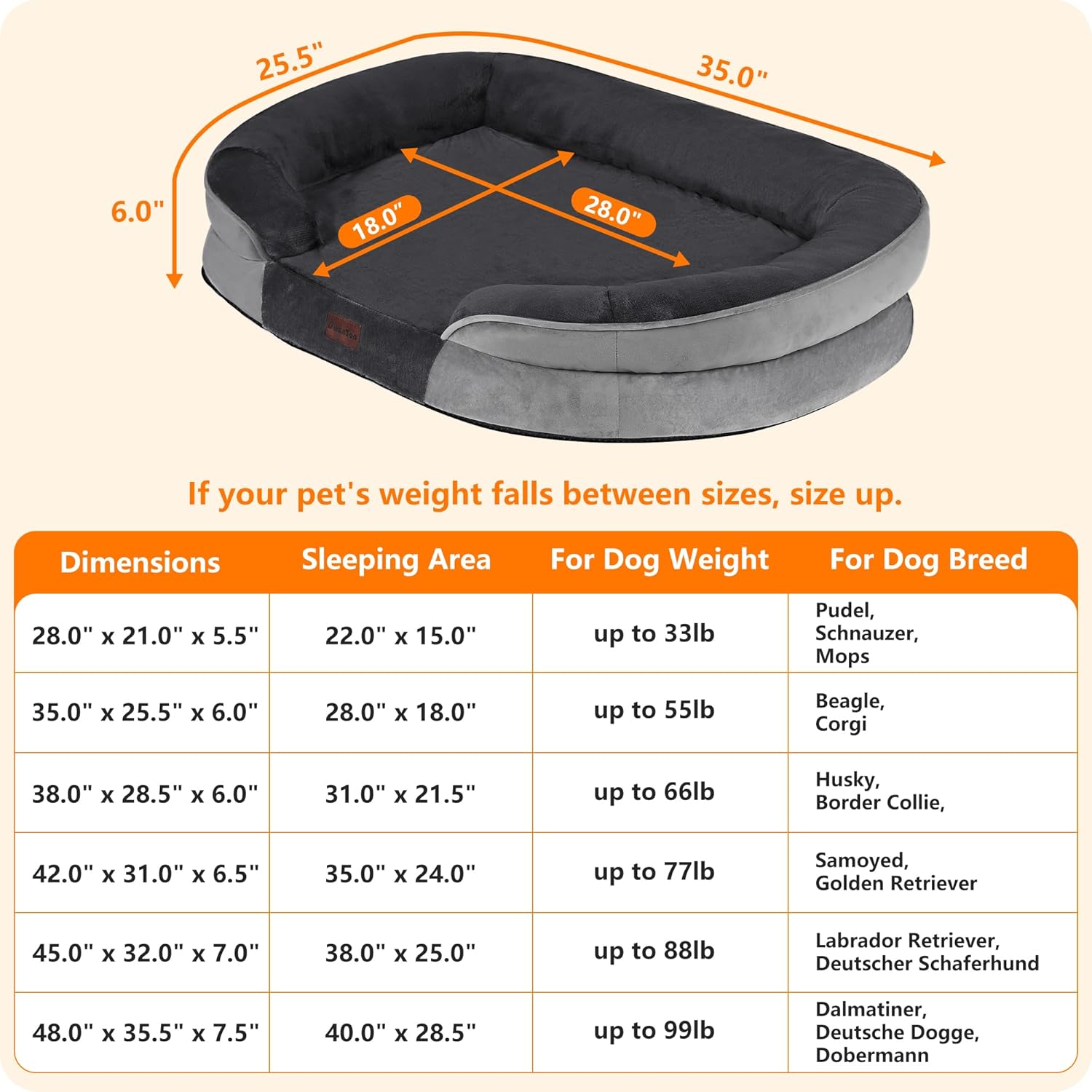 - Orthopedic Egg Crate Foam: 3" high egg crate foam at the bottom of the dog bed is soft, breathable and flexible, which provides even support for your dog's joints and muscles, effectively relieving the pressure on the joints of older dogs and making them feel relaxed and comfortable.
