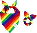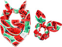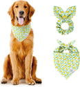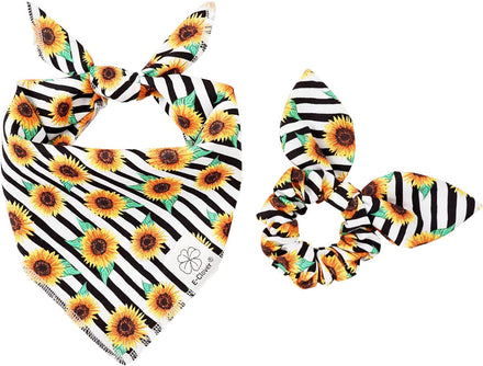 - Summer dog bandana Size: 22.8’’x15.7’’x15.7’’ (58cm*40cm*40cm). The adjustable puppy dog bandanas girl fit dog neck size up to 16.5’’ (42cm). You can roll the square dog scarves a couple of times to fit your dog & cats if it’s too large for your pets. Please measure your dog’s neck before buying. Flower bow scrunchie is one size fits all.