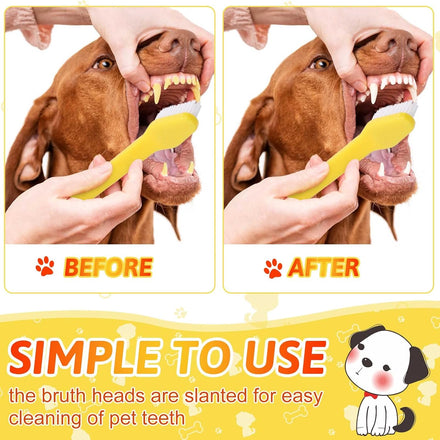 Unique Double Head Design: each dog double sided toothbrush has 2 brush head designs, the larger brush head is suitable for larger animal incisors, the smaller brush head is suitable for brushing small animals, different brush head sizes are designed for different pets; The curved angle design is convenient for you to deeply clean areas of your pet's mouth, keep your pet's mouth clean, protect your pet's gums while cleaning the animal's mouth