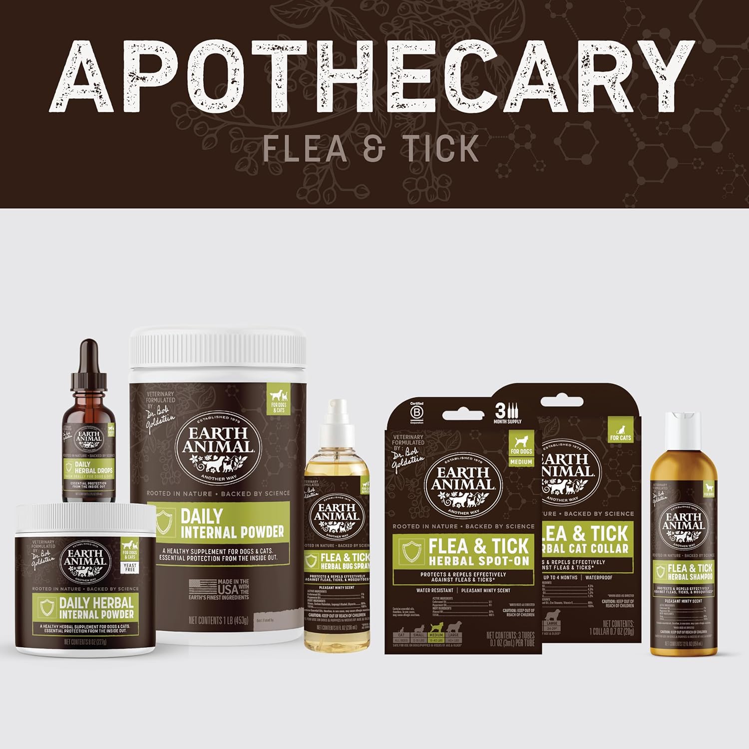 Since 1979, Earth Animal has been dedicated to helping pets live long, healthy lives by creating high-quality, wholesome foods, treats, herbal remedies, & supplements. As a holistic veterinary family, we share your goals of wellness and longevity for animals. Apothecary Flea & Tick products are veterinary formulated and made in the USA with the finest ingredients from around the world. You can trust that every choice we make thoughtfully upholds our mission to preserve and enhance quality of life for all Earth’s animals. We use only ingredients that cause no harm to animals, people, or the environment. We’ve clinically developed a way to double down on natural flea & tick protection without using risky synthetic chemicals. Our flea & tick products work synergistically. The internal products bolster the body’s immunity to insects while the external products to help repel insects. If you’re choosing the natural way to protect your pets, double down with Earth Animal and provide the best, most comprehensive protection Mother Nature can provide. Earth Animal dedicates 1% of annual net sales to efforts that preserve and enhance quality of life for animals, people, and the Earth.