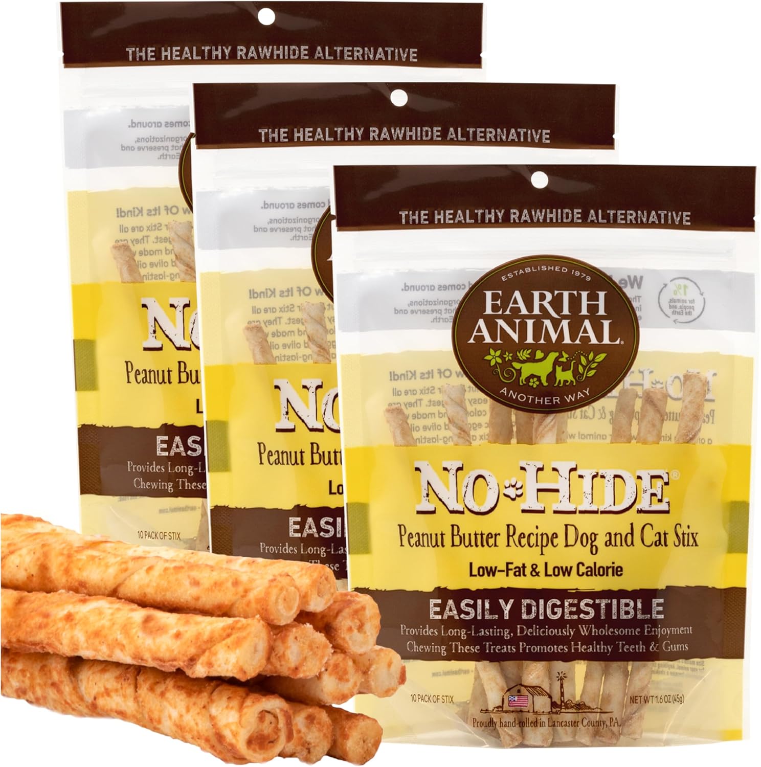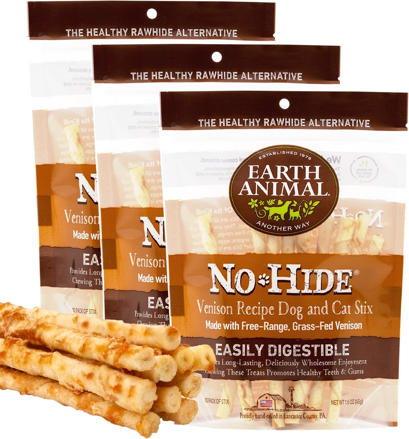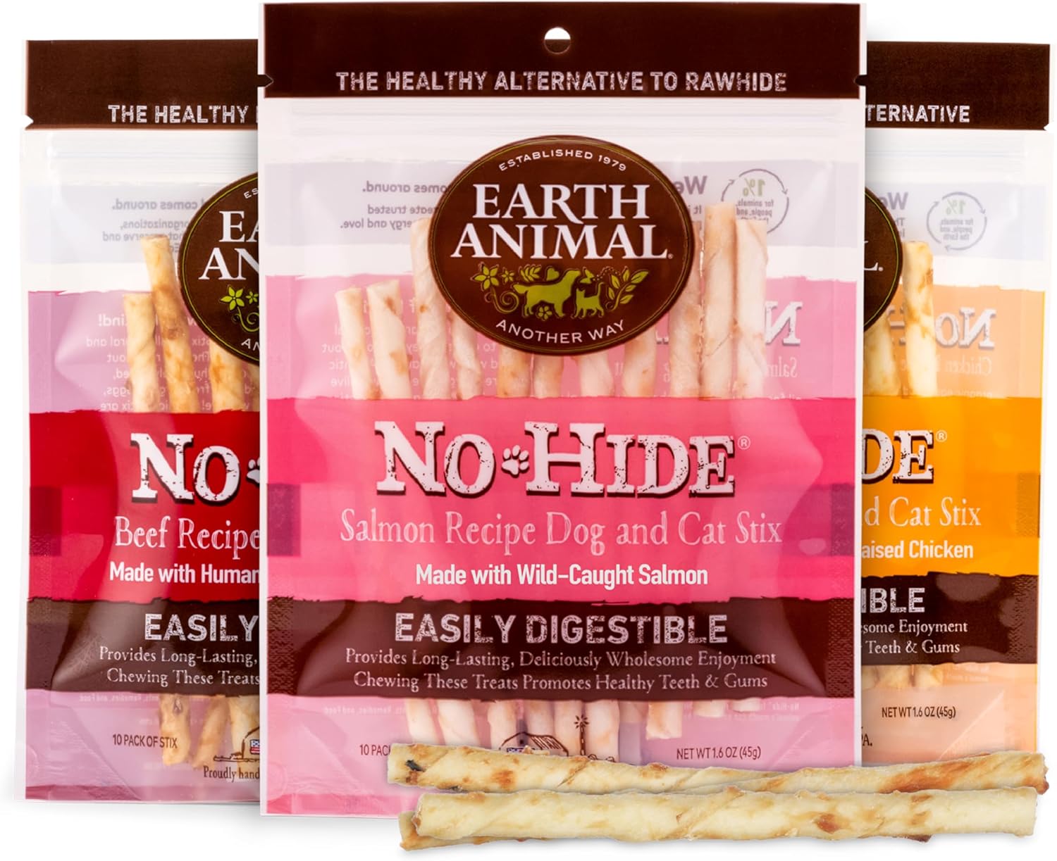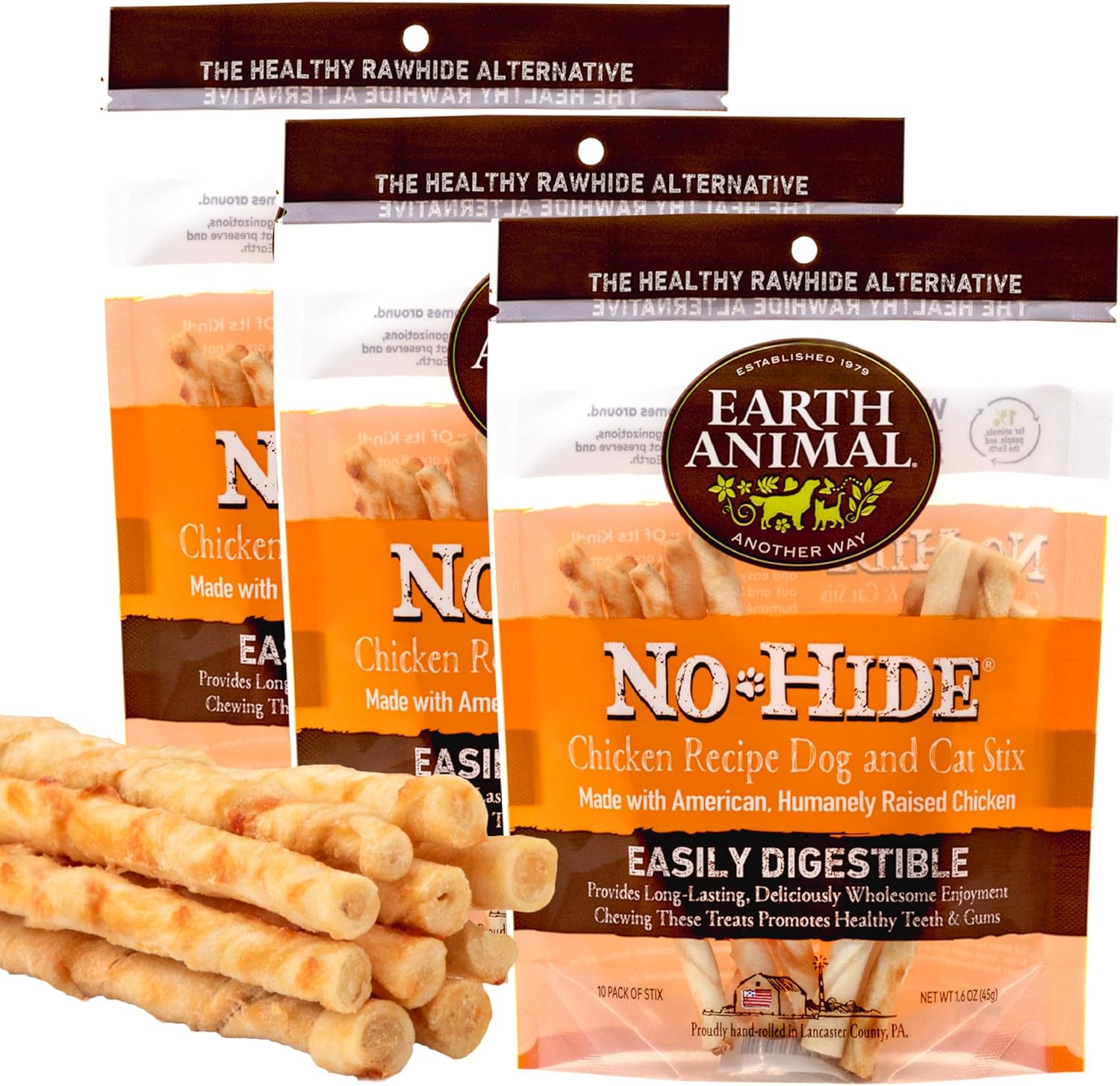 Earth Animal No Hide Stix Chicken Flavored Natural Rawhide Free Dog Chews Long Lasting Chew Sticks | Treats for Small Dogs and Cats | Great for Aggressive Chewers (3 Pack)