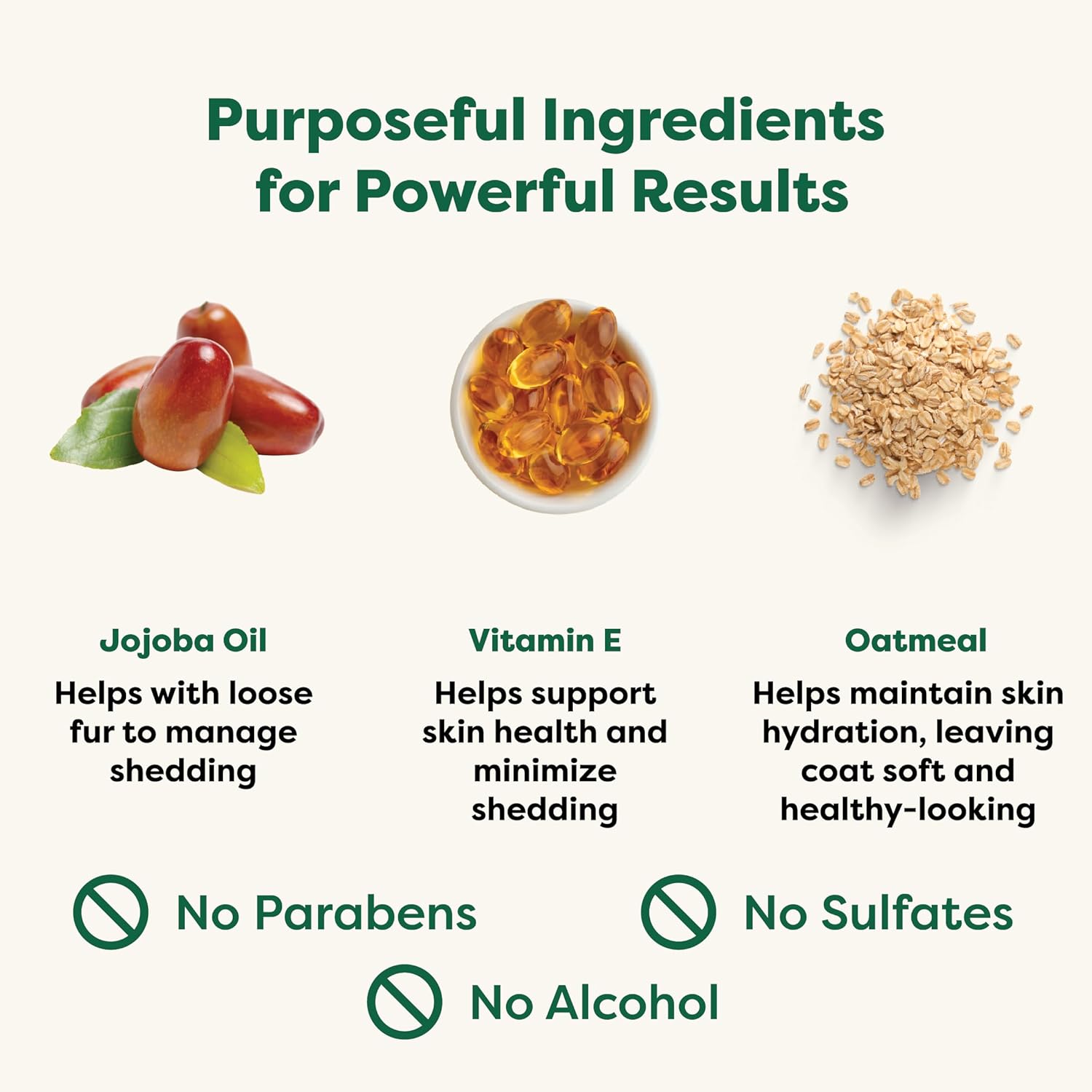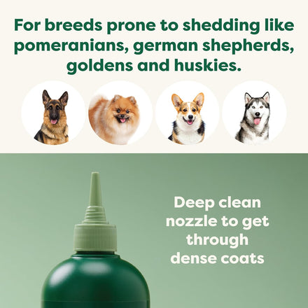 - DESHEDDING FORMULA FOR EFFORTLESS BRUSHING: Powered by jojoba oil, this dog conditioner and deshedding dog shampoo helps control shedding while restoring softness. Ideal for breeds with shedding coats like German Shepherds, Pomeranians, Corgis, and Huskies