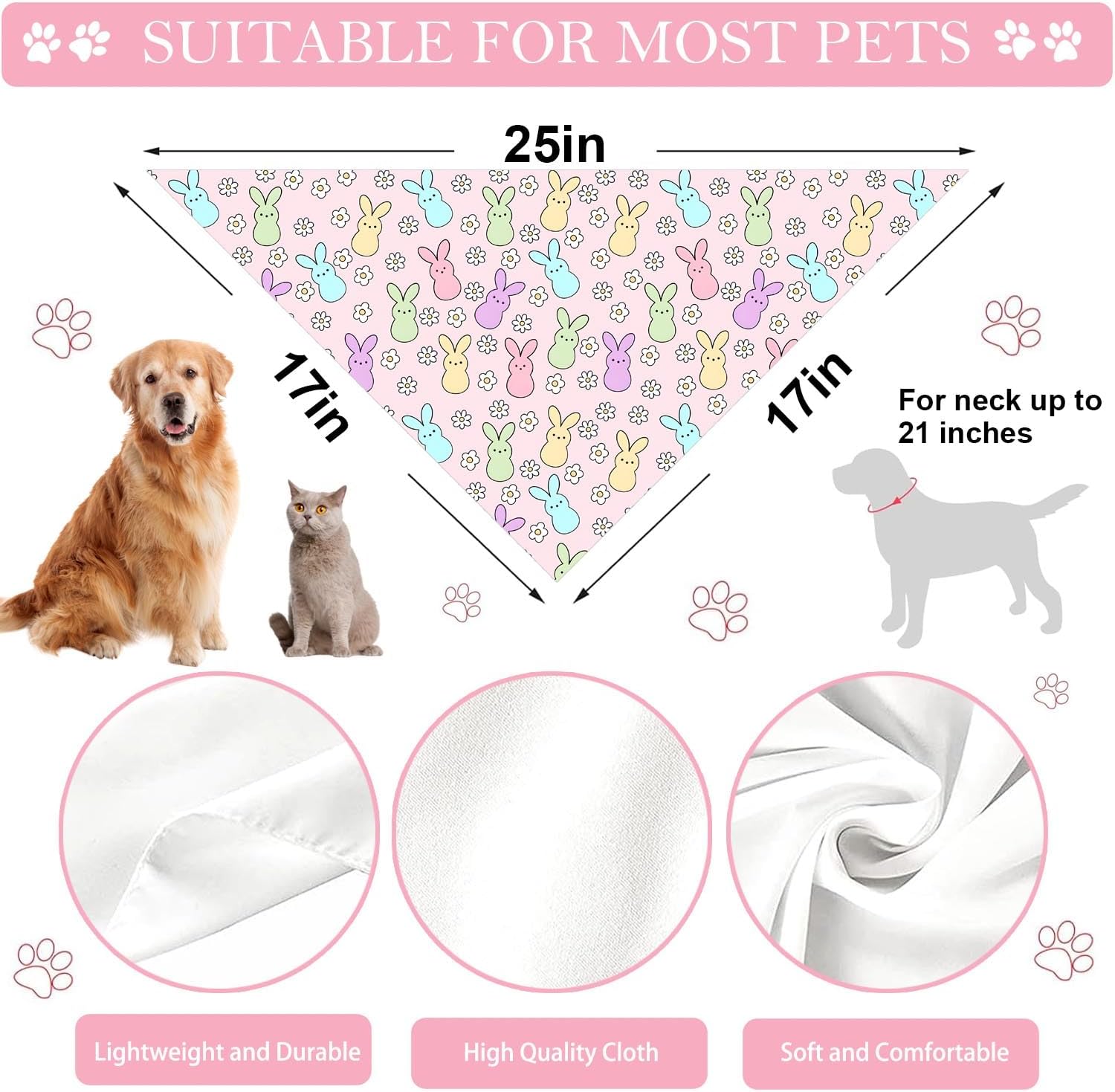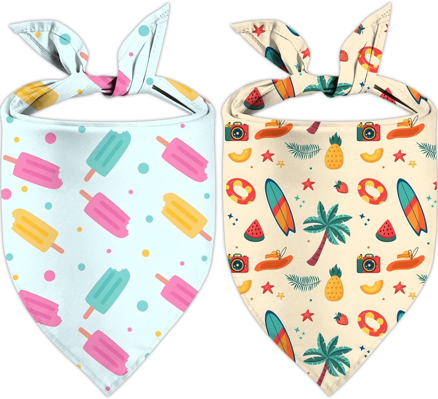 • One Size Fits Most Dogs: Bandana comes as a 17x17x25inch Dog Bandana, which can be folded over multiple times. This dog bandana is ideal for medium to large size dogs, but it also can work as a small dog bandana if folded. Makes the ideal summer decor for dogs.