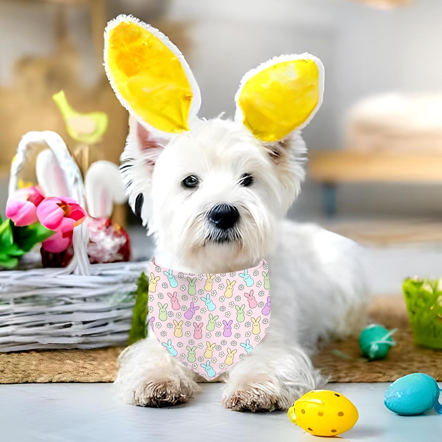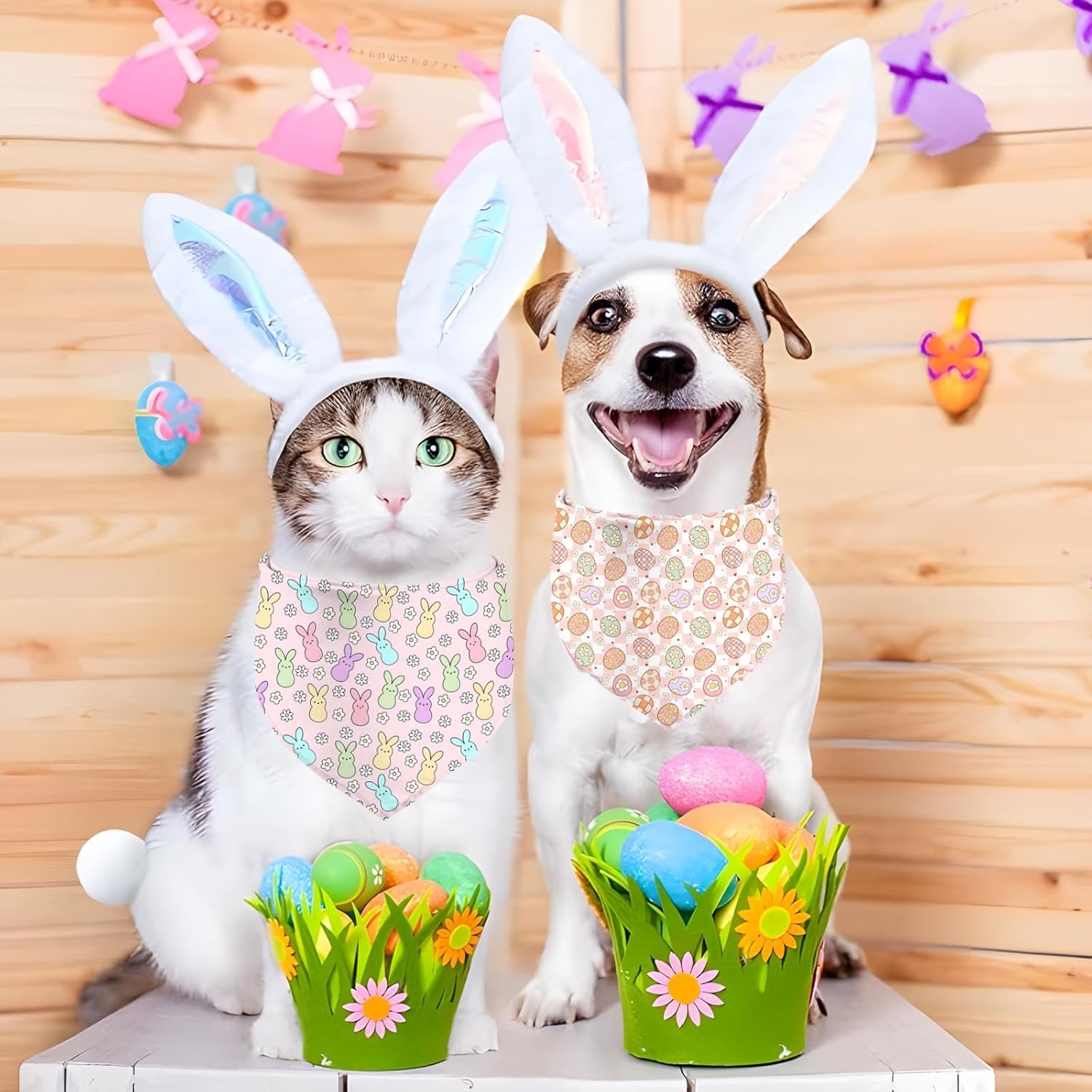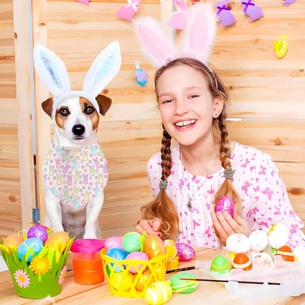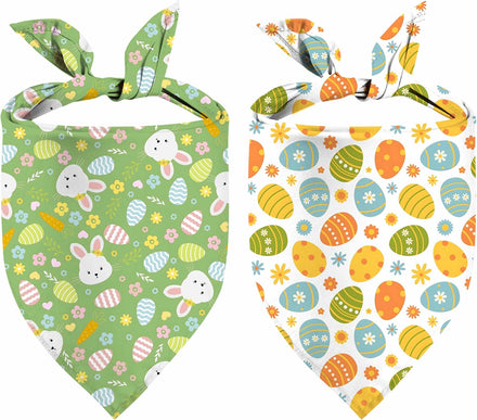 Easter Dog Bandana, 2 Pack Adjustable Holiday Party Pets Rabbit Easter Egg Bandanas Triangle Bibs Dog Cat Scarf Set
