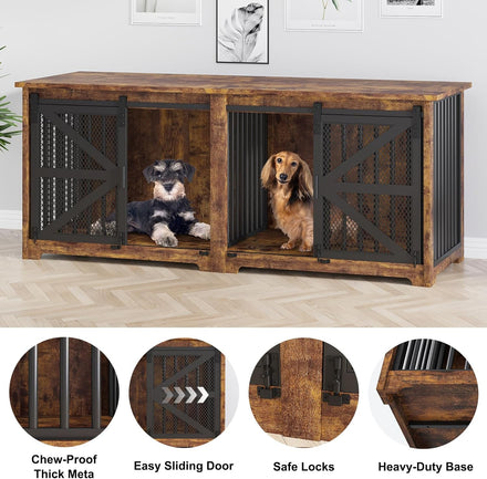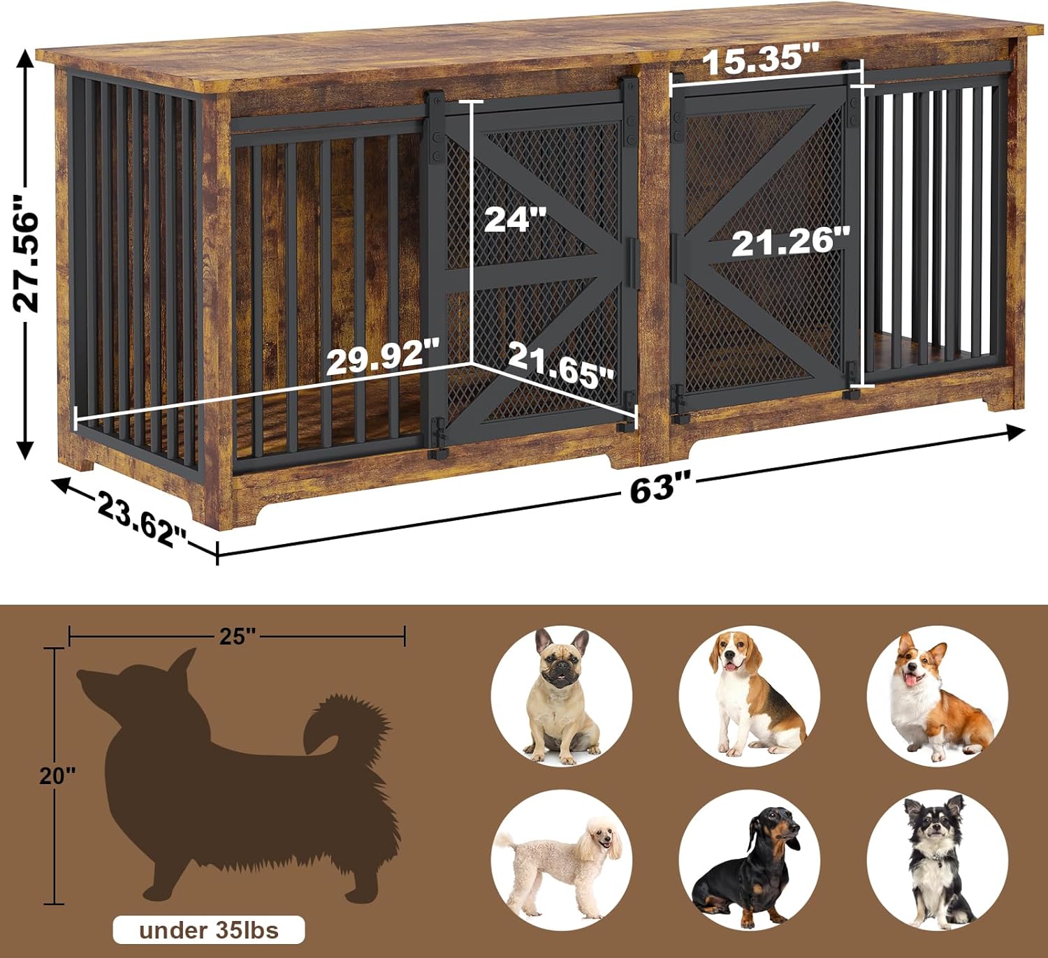 - 【Ample Space for Dogs】: A Comfortable Crate Where Dogs Can Stand and Turn Around Freely! With 63"L x 23.62"W x 27.17"H dimension, the dog kennel furniture allows dogs to stand freely, turn around easily, and happily chase after their tails in the cage. Dogs will have a comfortable and spacious living space, avoiding anxiety and unease due to limited space.
