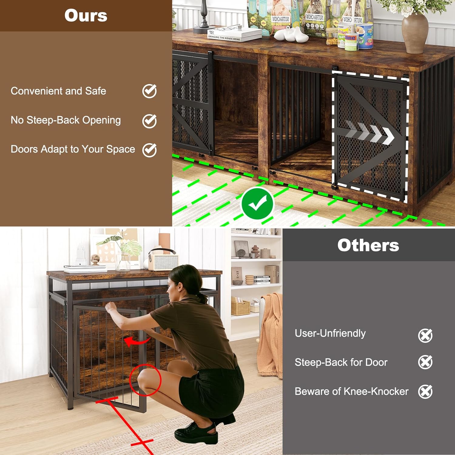- 【Multi-Functional & Stylish】Not Just a Crate — It's Stylish Furniture that Saves Your Space! Maximize your space with this furniture dog crate. Use its spacious desktop as a side table, TV stand, or plant shelf. Its multi-functional design eliminates the need for extra furniture, saving space while keeping your pet comfortable and your home beautiful.