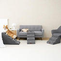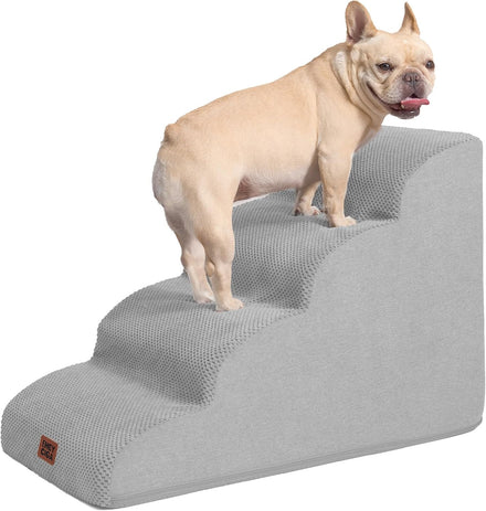- MULTIPLE STEP SIZES - This dog stair has 2 steps, 3 steps, 4 steps and 5 steps to choose. Our 2-step stairs fits for chair/sofa/bed up to 13inch. 3-step stairs fits for chair/sofa/bed up to 17inch. 4-step stairs fits for chair/sofa/bed up to 21inch. And 5-step stairs fits for chair/sofa/bed up to 24inch.