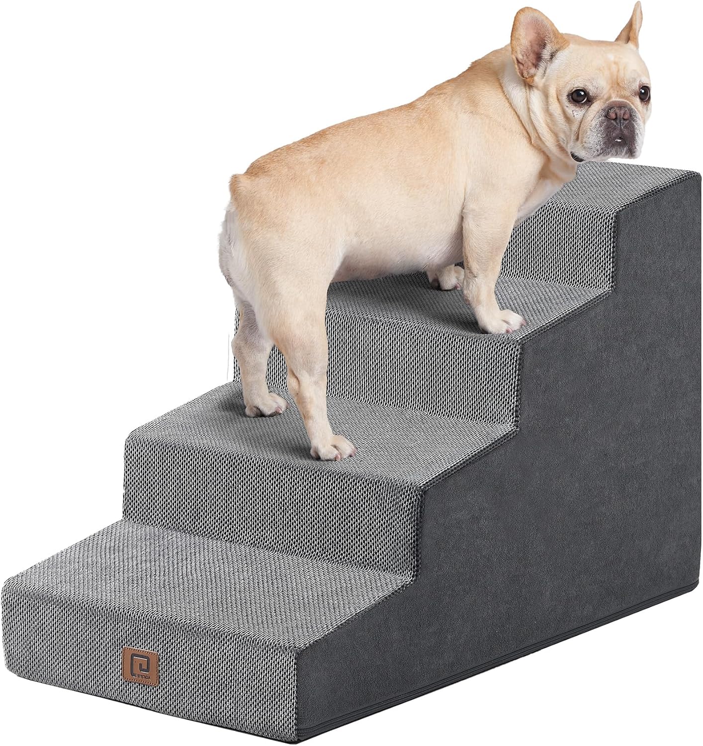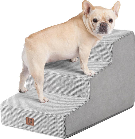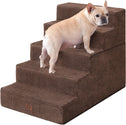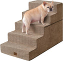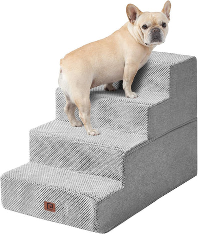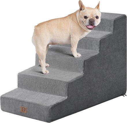 - MULTIPLE STEP SIZES - This dog stair comes in 3, 4, and 5-step options. Our 3-step pet stair is ideal for sofas and low beds (up to 18 inches high), while the 5-step version is better suited for higher beds (up to 27 inches). If your bed is of medium height (up to 23 inches), please select the 4-step one.