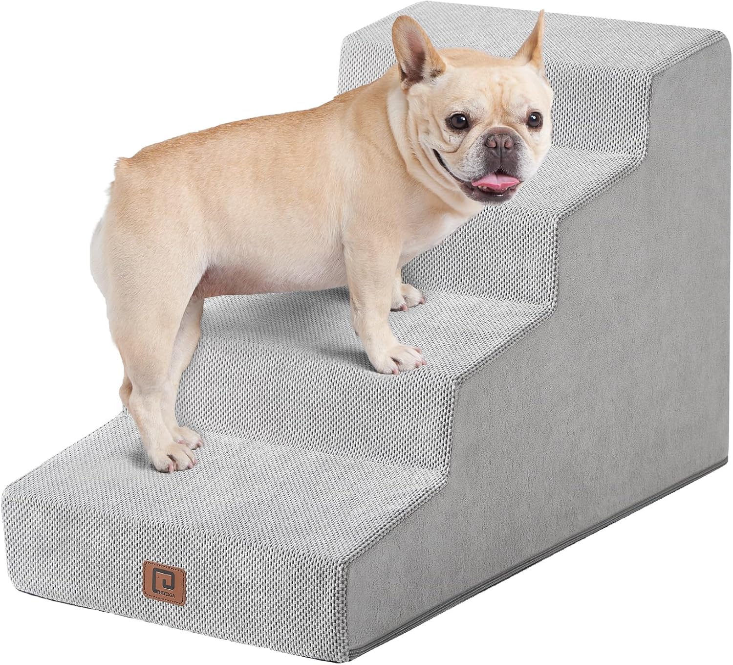 - MULTI-SCENE USAGE - EHEYCIGA foam dog stair is designed to fit against the edge of a bed, sofa, or other furniture, allowing your pet to climb up and down comfortably. It's a portable dog step suitable for small and medium dogs.
