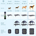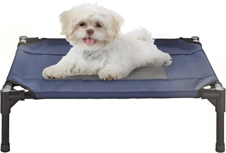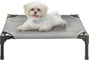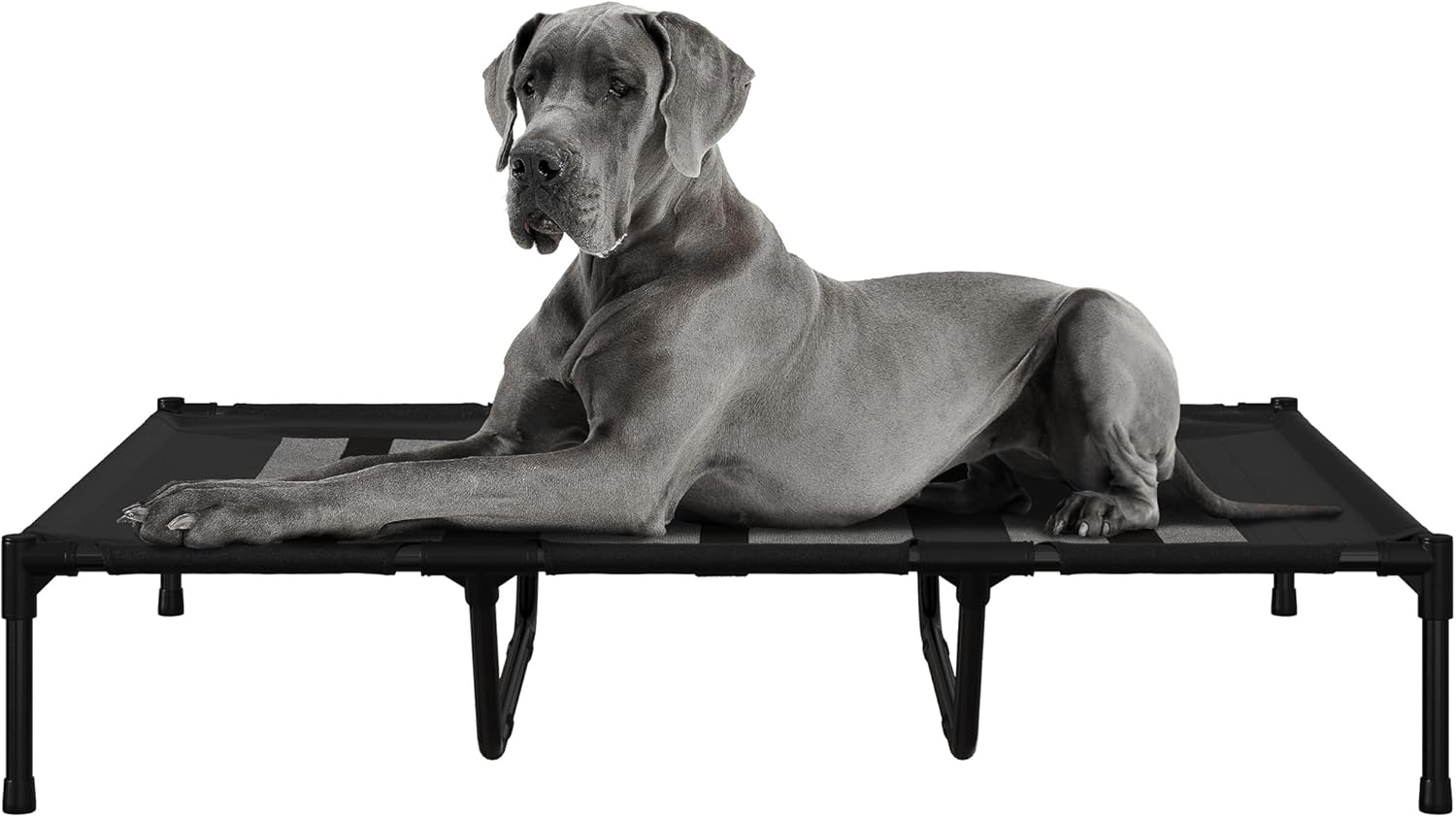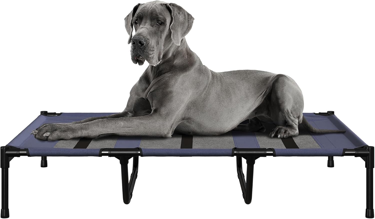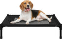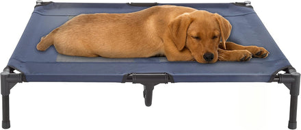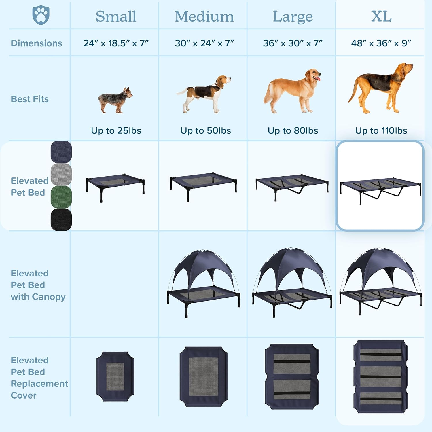 - RAISED DOG BED - The XL dog bed offers ventilation through its big mesh panel and body temperature regulation for your pet, as it keeps them off hot pavement, the ground, and cold floors. The outdoor bed supports pets up to 110lbs.