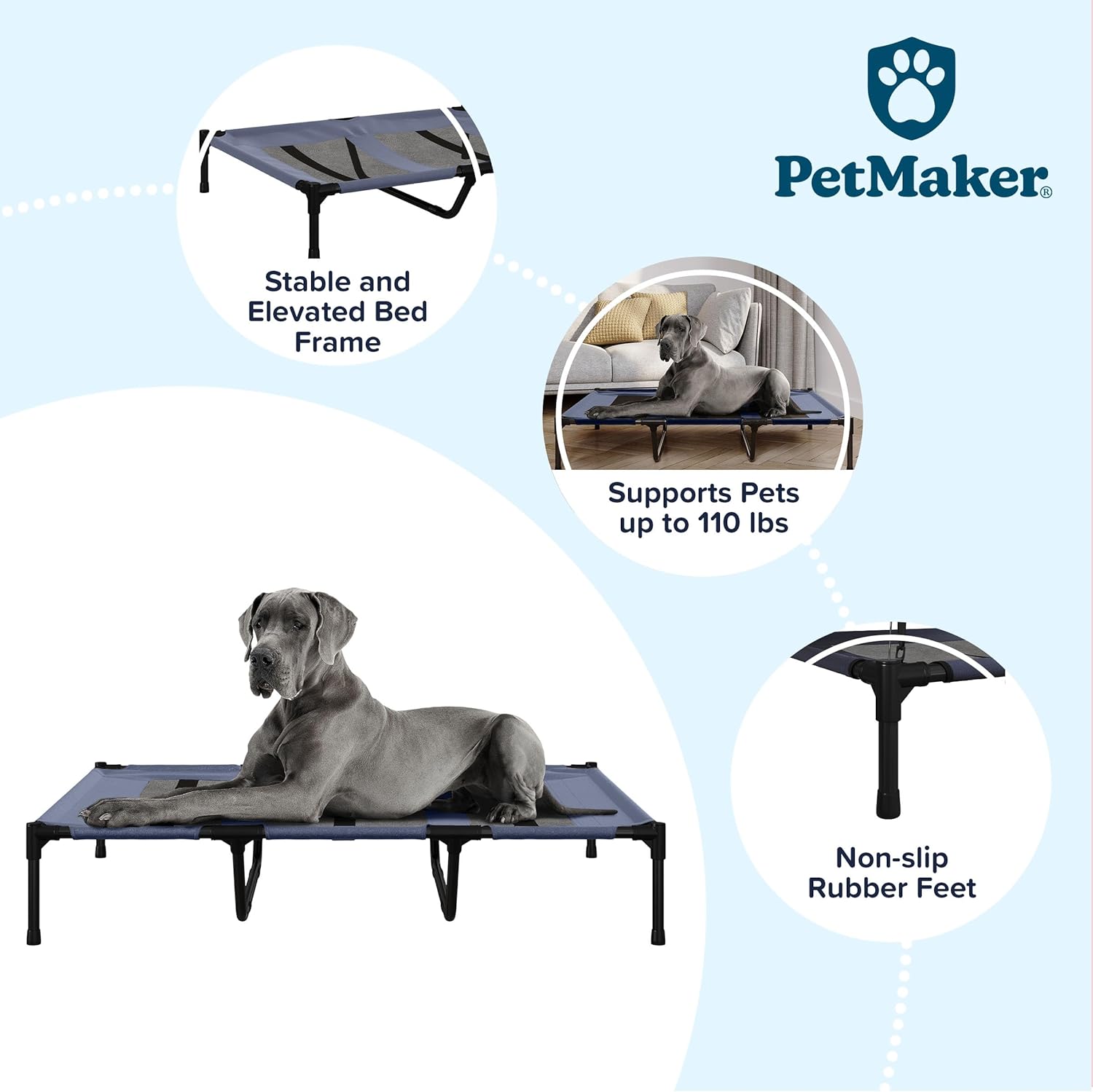 The Elevated Cat Bed by PETMAKER is a comfortable and practical sleeping solution for your furry friend. Weather-resistant and perfect for both indoor and outdoor use, this cooling dog bed provides excellent ventilation and body temperature regulation for your pet, helping them stay relaxed and happy even in hot or cold temperatures. This lightweight and portable outdoor dog bed comes with a carrying case, sets up, and breaks down in minutes so your pet can rest wherever your travels may take them. IMPORTANT: PETMAKER is committed to providing the consumer with the absolute best price and value on all of our products. NOTE: This is an exclusive product of PETMAKER and ONLY Dog Beds & Furniture by PETMAKER are GUARANTEED to be genuine. Avoid buying counterfeit products and transacting with unauthorized sellers. PETMAKER is a registered trademark protected by U.S. Trademark law and will be vigorously defended.
