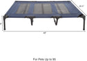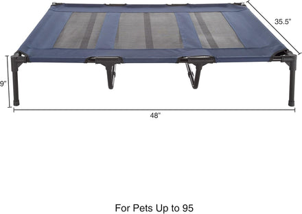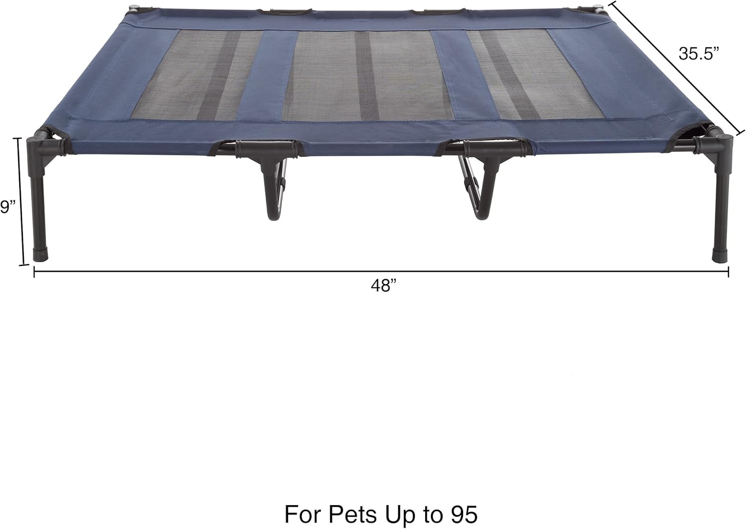 - PRODUCT DETAILS - Materials: Mesh, Coated Steel, PVC Connectors, and Water-Resistant Canvas. Dimensions: (L) 48” x (W) 35.5” x (H) 9”. Durable Dog Bed Carrying Case Included. For Pets up to 110lbs. Color: Blue.